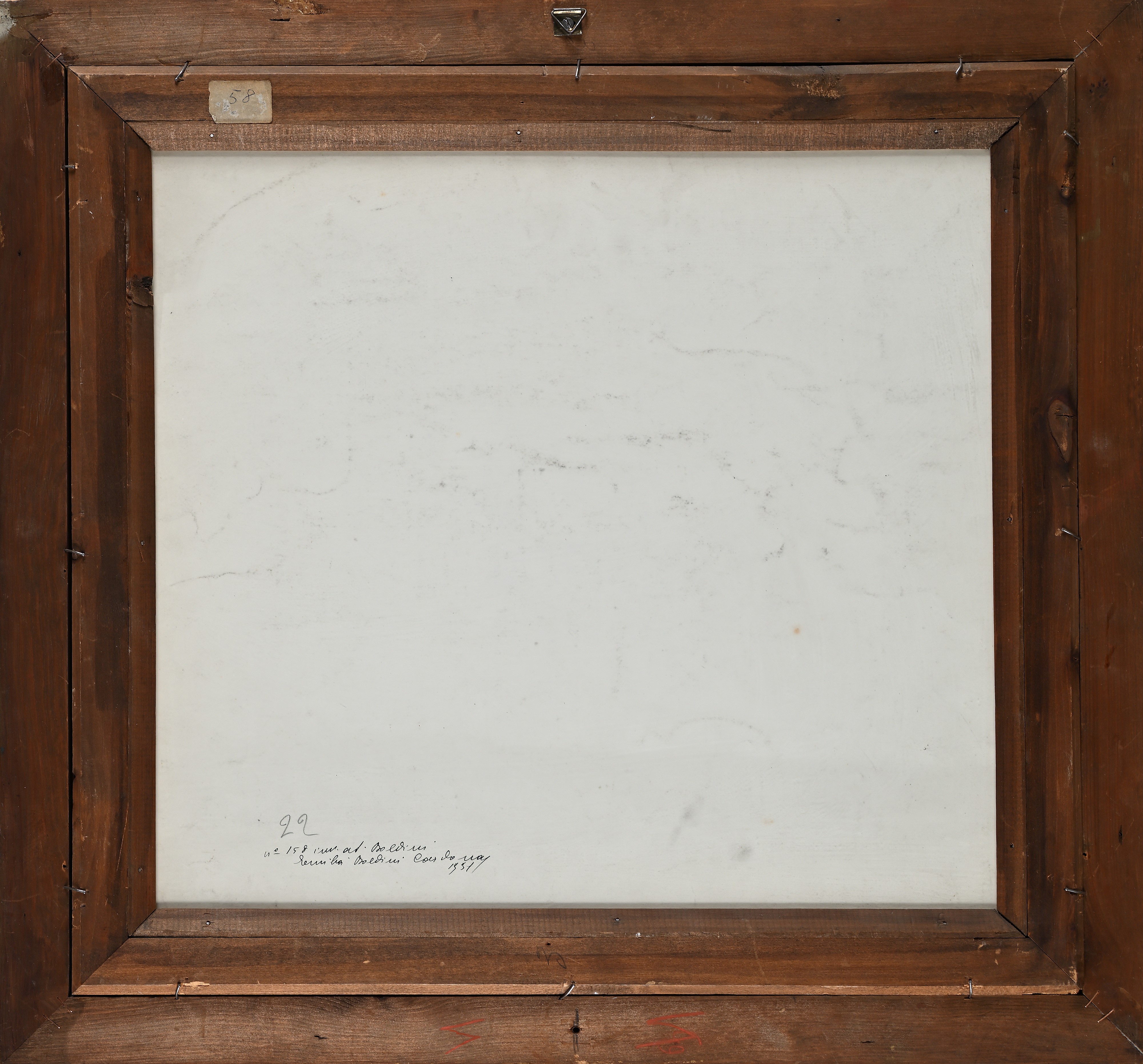 Sul retro: dichiarazione di autenticità di Emilia Boldini Cardona in data 1931 per l'inventario dell'atelier alla morte del maestro con numero 158; numero a matita 22.