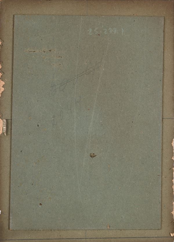 Sul retro, sul cartone di chiusura della cornice, antica scritta Morelli con numero di riferimento (20) e vecchio cartellino manoscritto con il titolo..