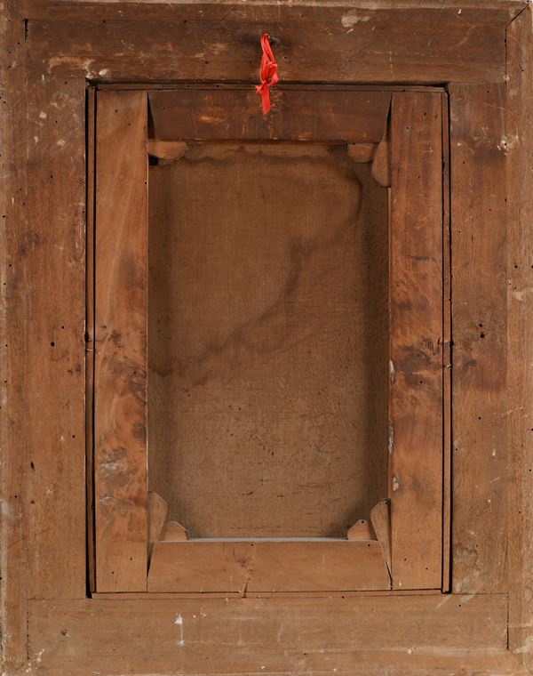 firmato, dedicato e datato sopra la spalla destra del personaggio raffigurato P. Ruggiero a / suo cognato / 1882