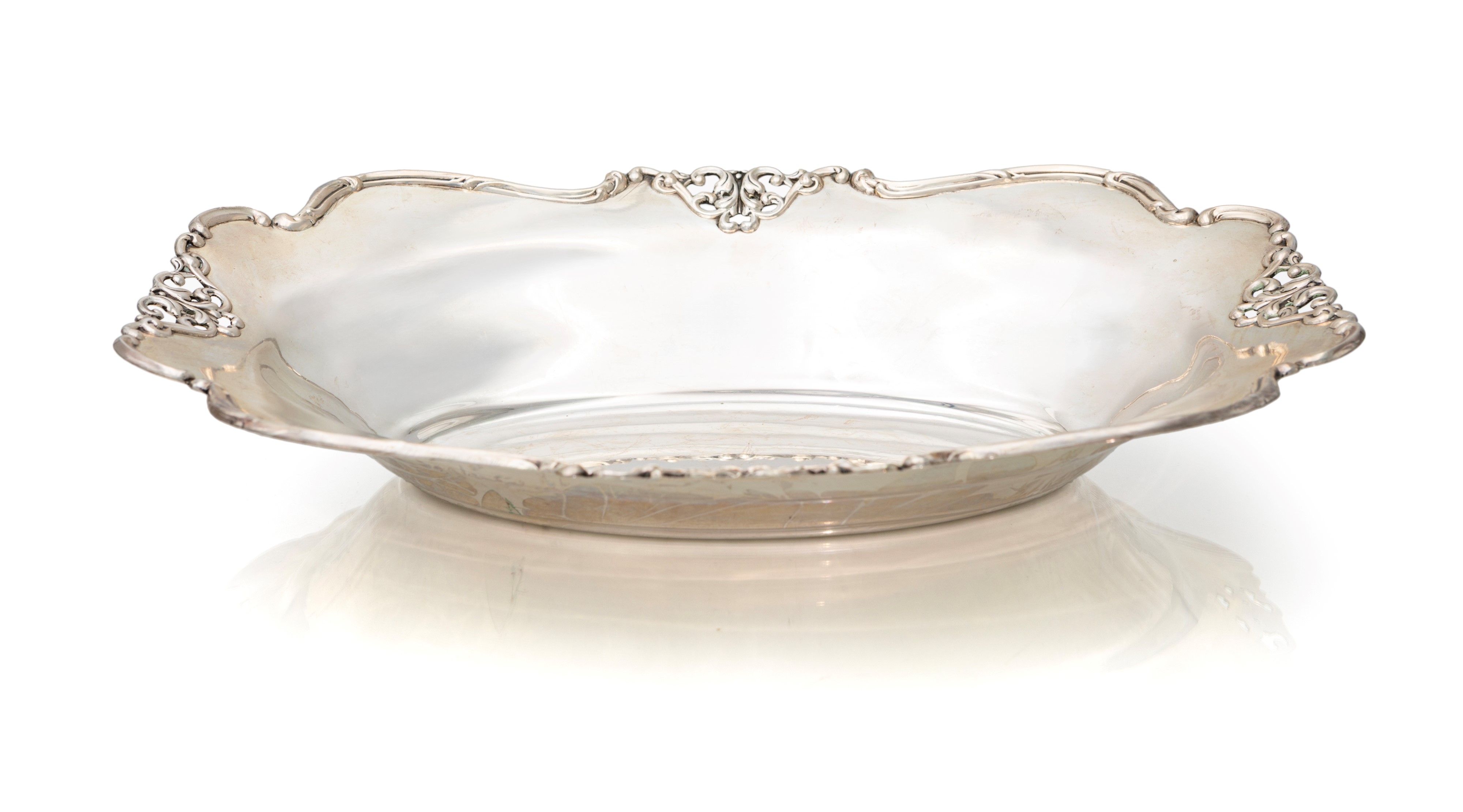 tesa con orlo curvilineo ornata al centro di ogni lato da una composizione di volute vegetali traforate