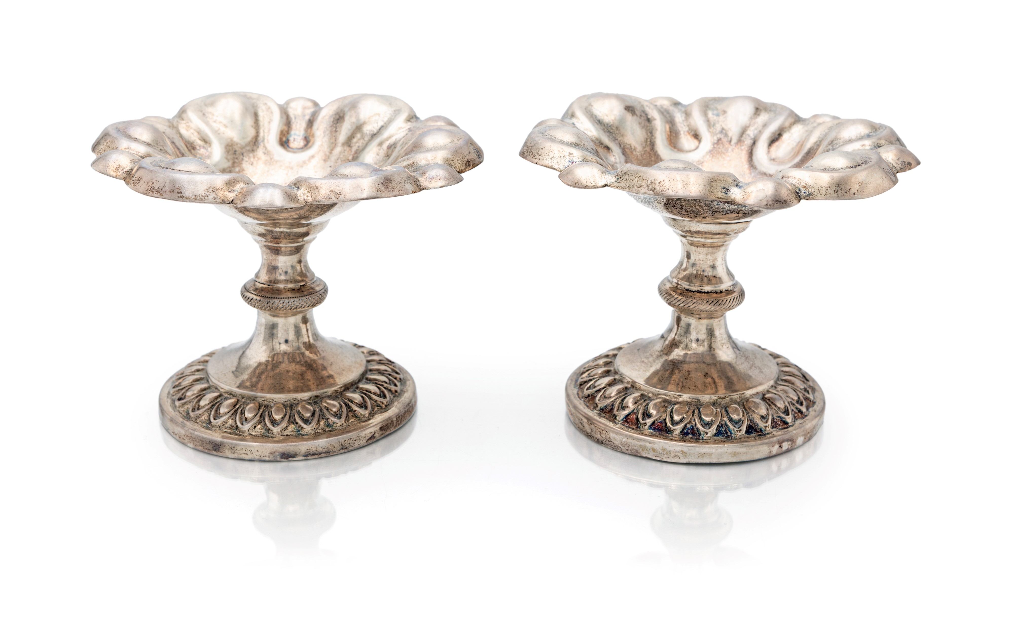 vaschetta a forma di corolla su basso stelo centrato da un anello zigrinato. Bolli!!!