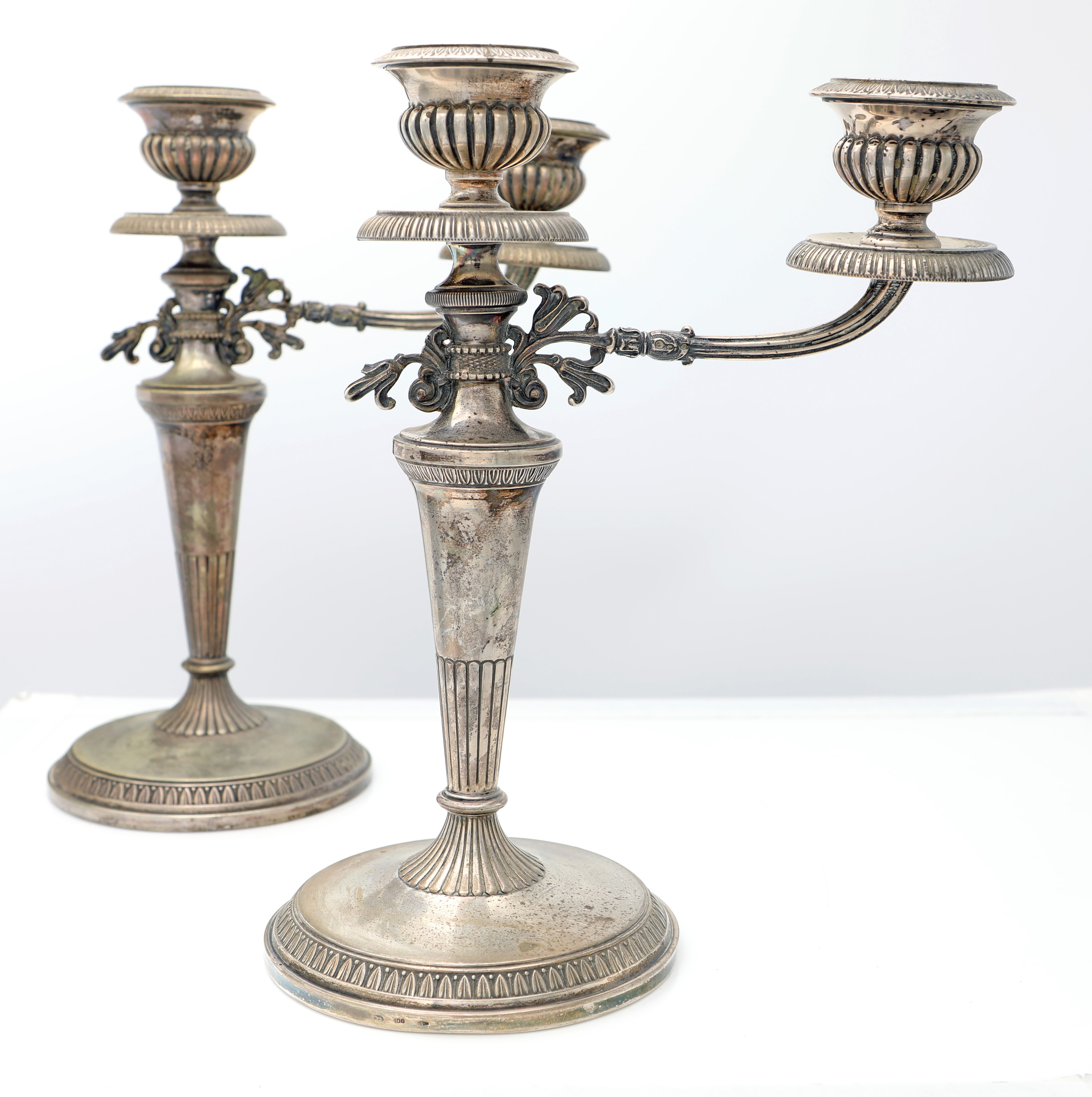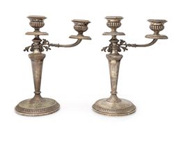 Coppia di candelieri a due luci in argento 800/000