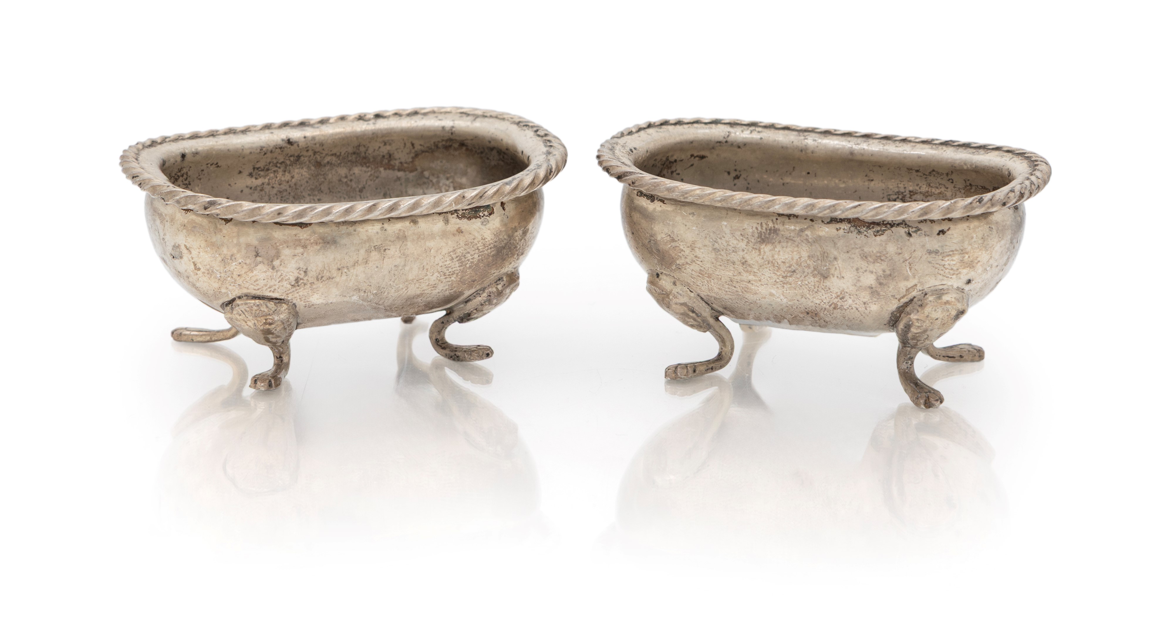 Coppia di piccole saliere in argento