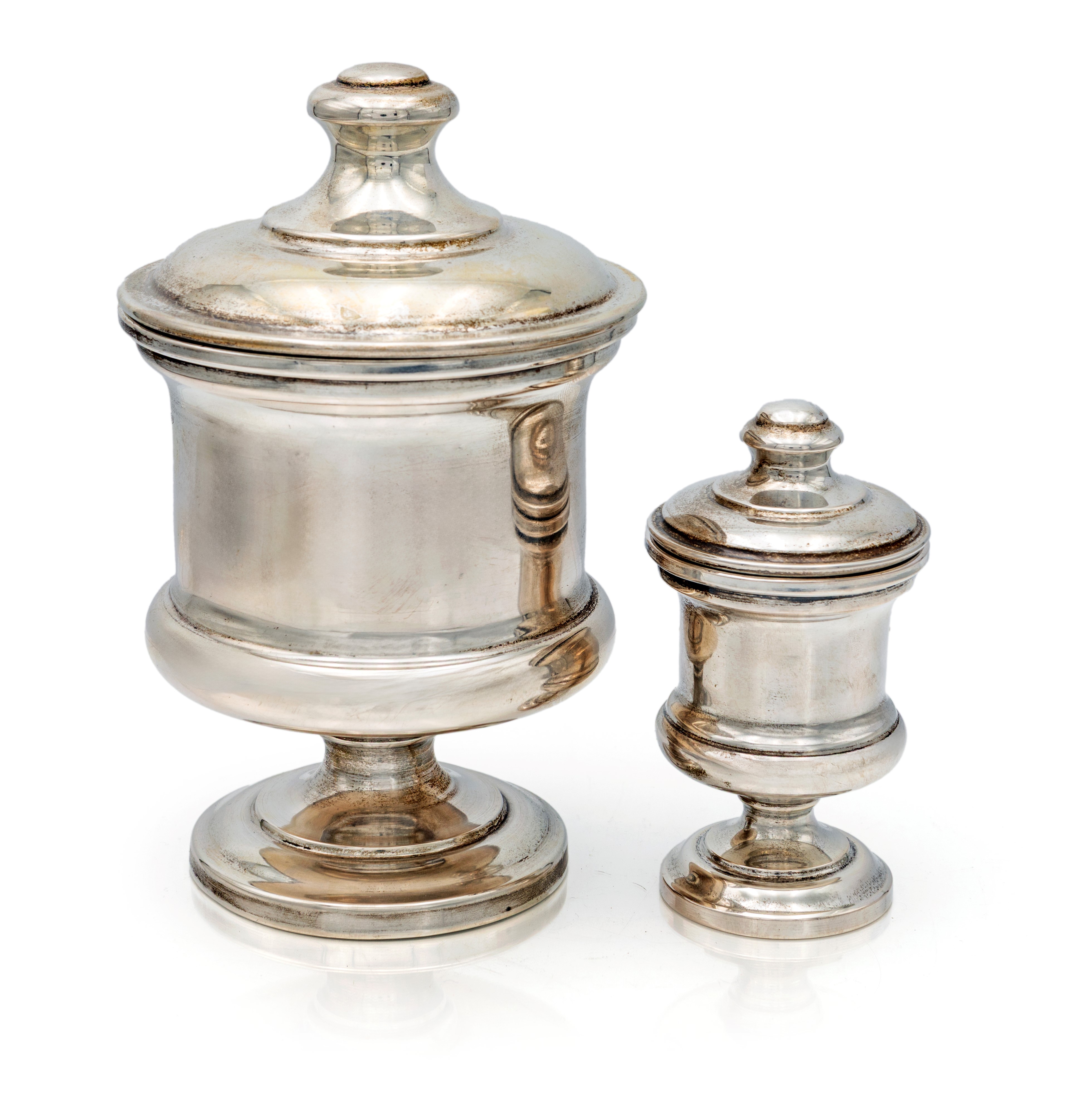 Due coppe con coperchio di diversa misura, argentiere Brandimarte