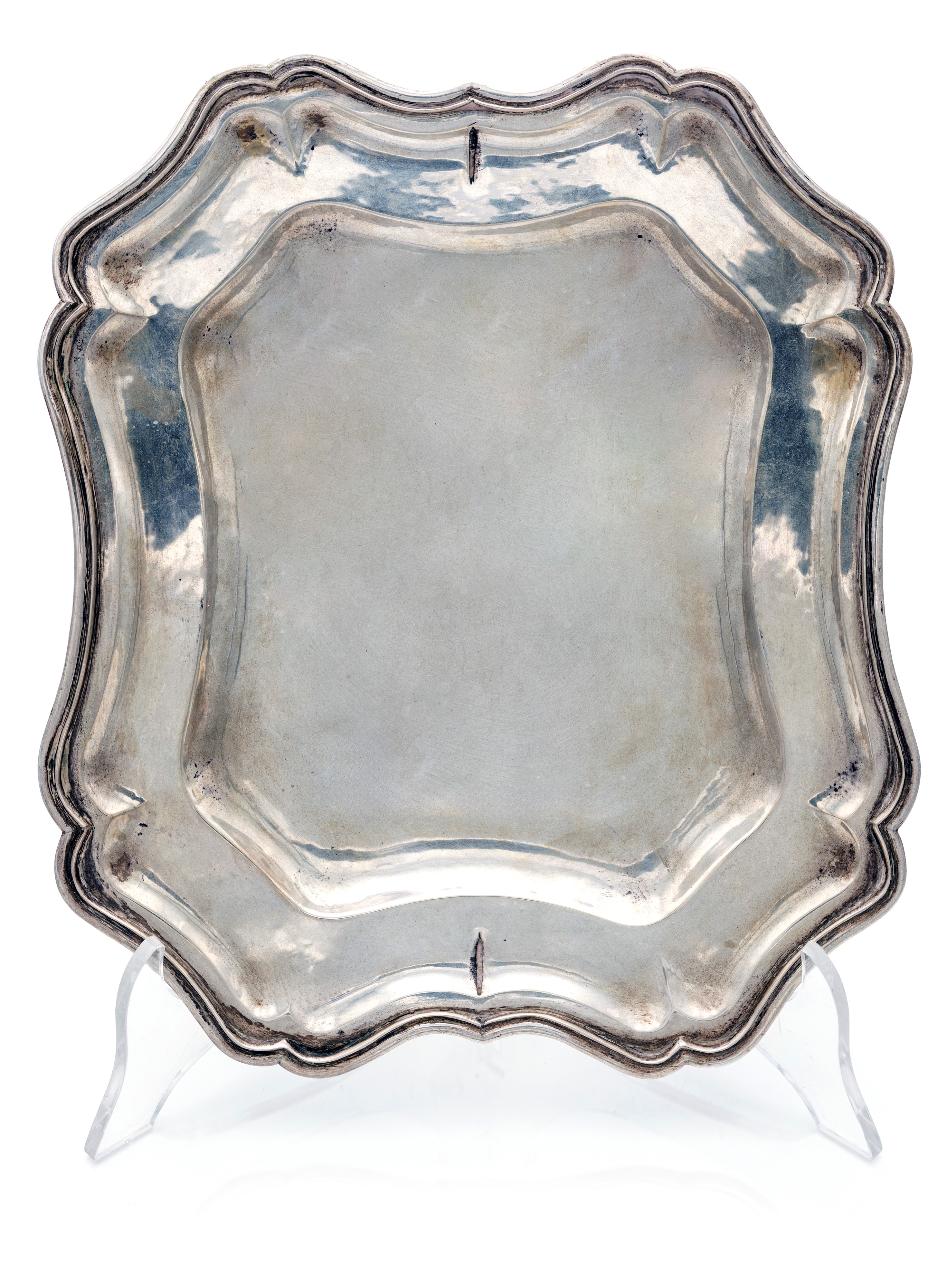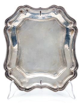 Piatto rettangolare sagomato in argento, Venezia, XX secolo