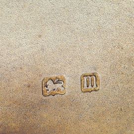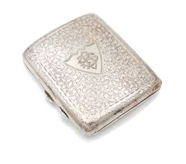 fitta decorazione con foglie incise e iniziali SB entro scudo