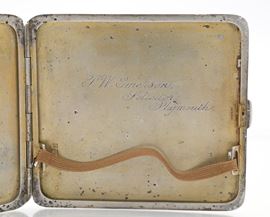 superficie rigata con riserva circolare e monogramma; all'interno dedica incisa "T.W. Emerson / Solicitor / Plymouth
