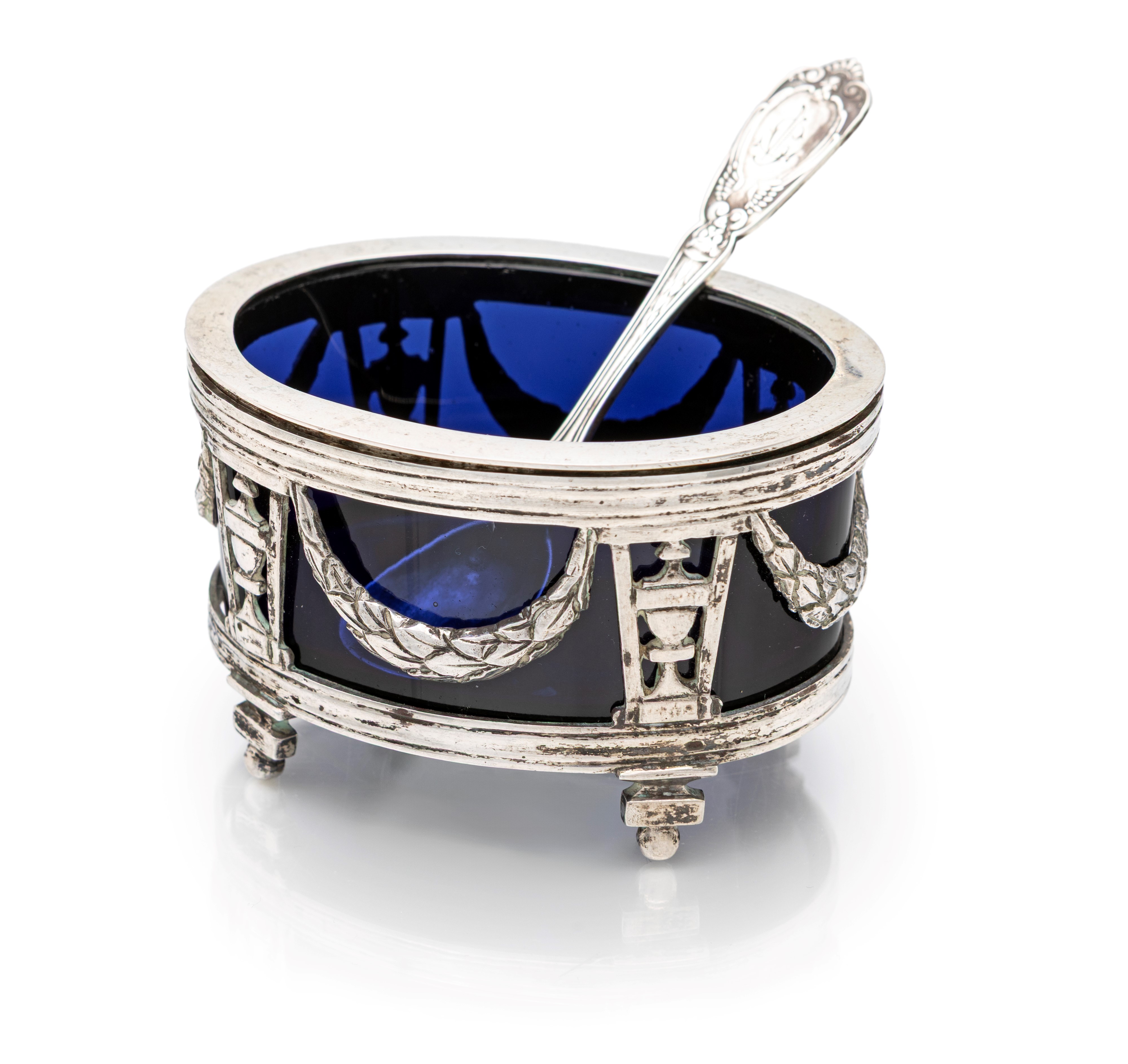 Saliera ovale in argento con cucchiaino, Francia, prima metà del XIX secolo