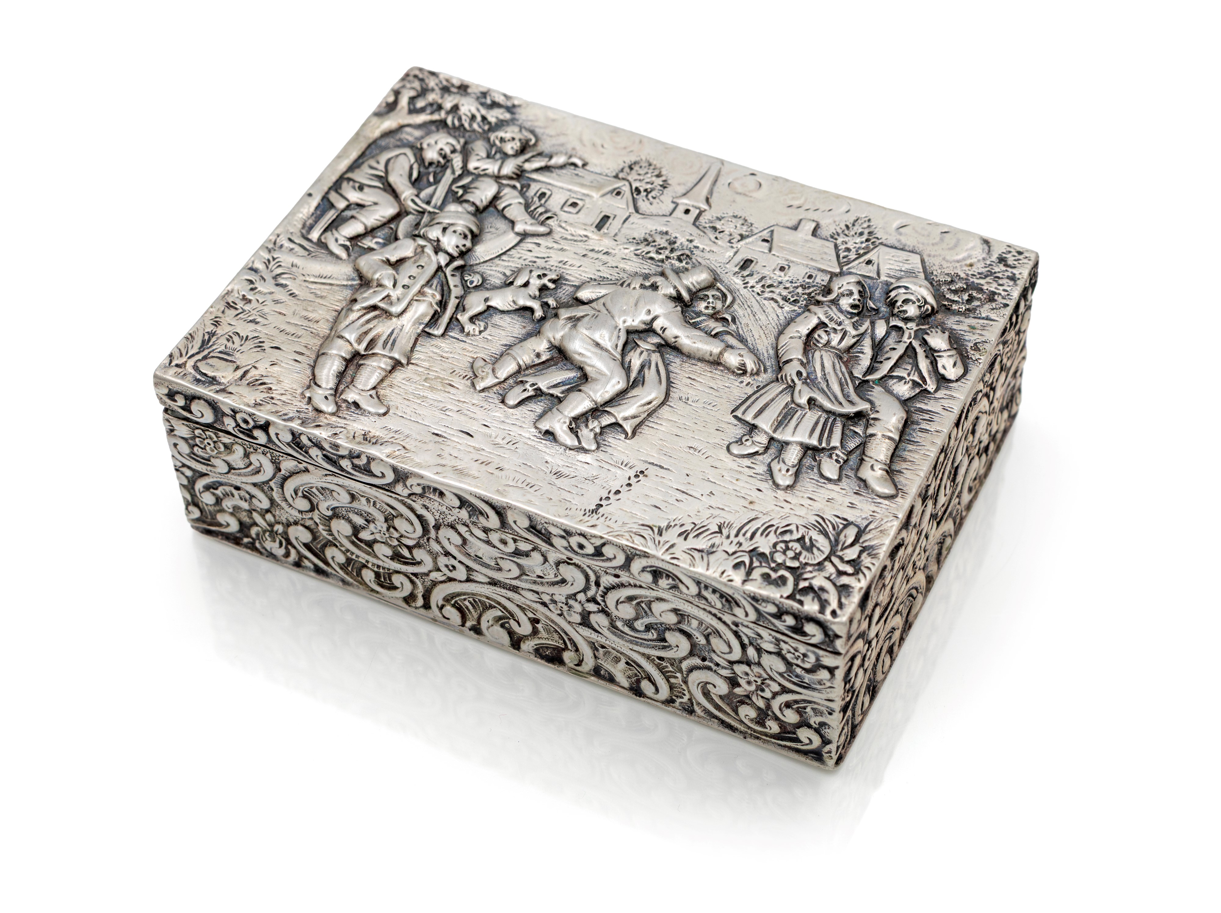 Scatola in argento sbalzato e cesellato, Germania, XIX secolo