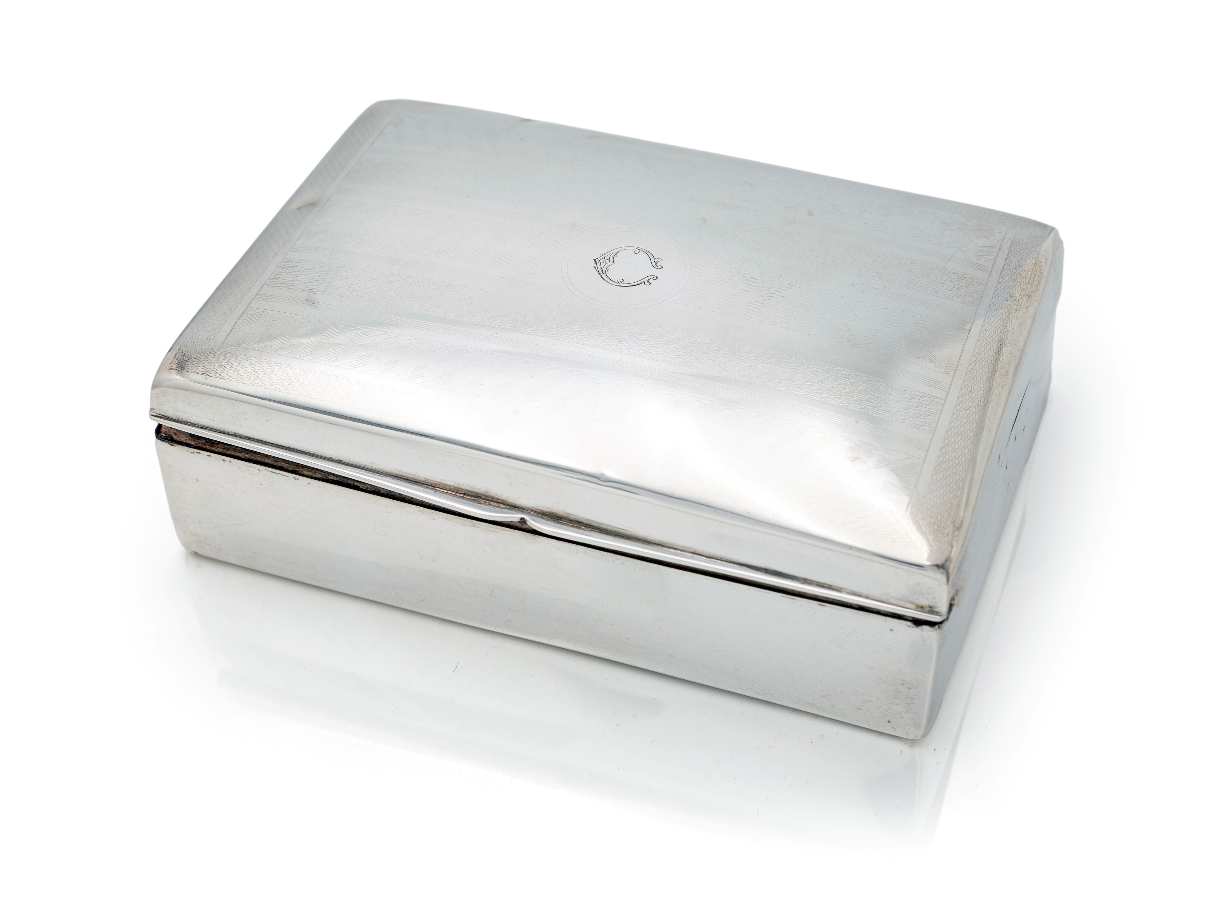 di forma rettangolare con coperchio incernierato e traccia di decorazione a fasce incise al bulino; al centro iniziale "C" incisa