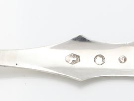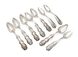 Sei cucchiaini da tè e tre dalle analoghe caratteristiche in argento inciso