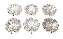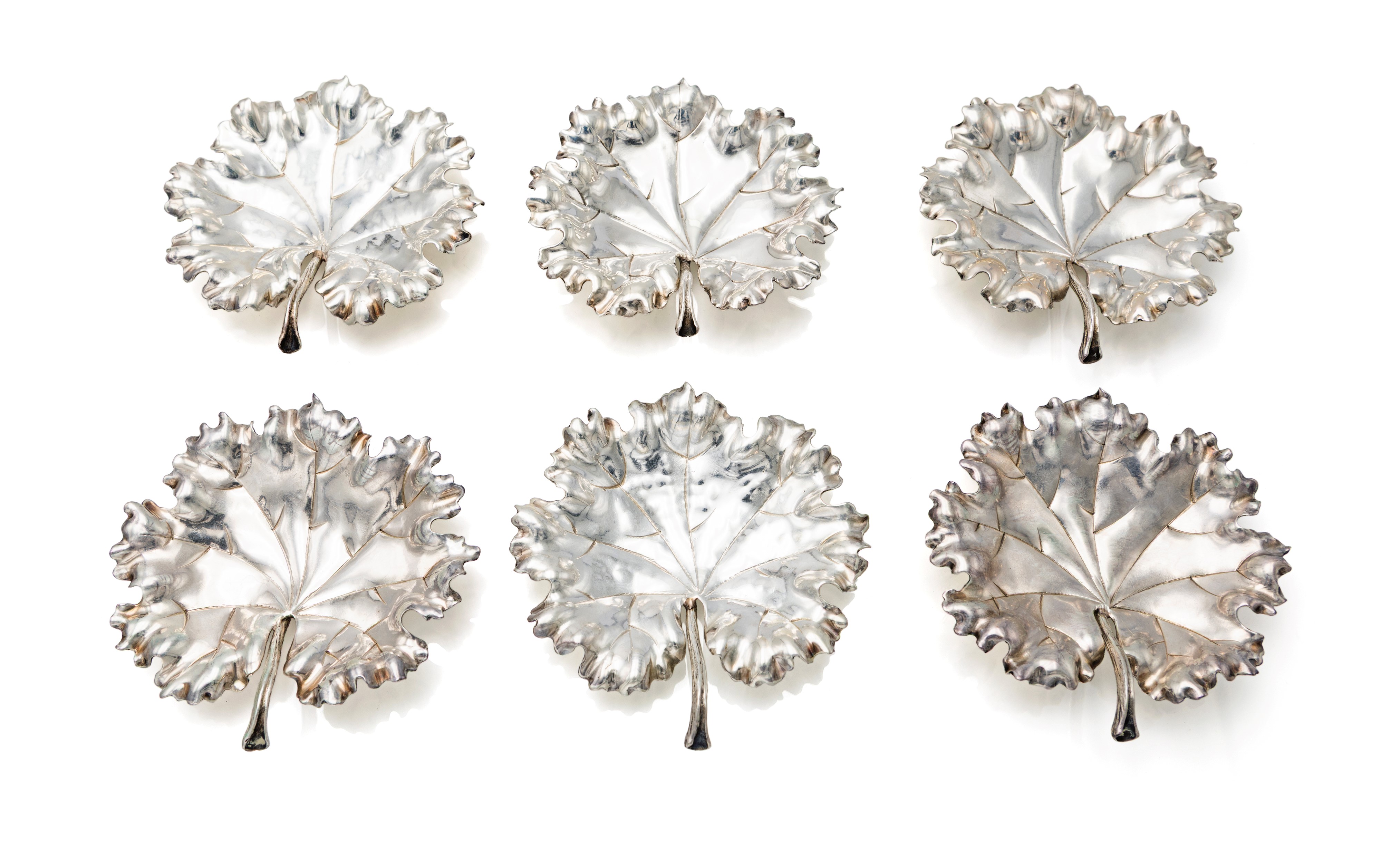 Sei piattini a forma di foglia in argento 925/000