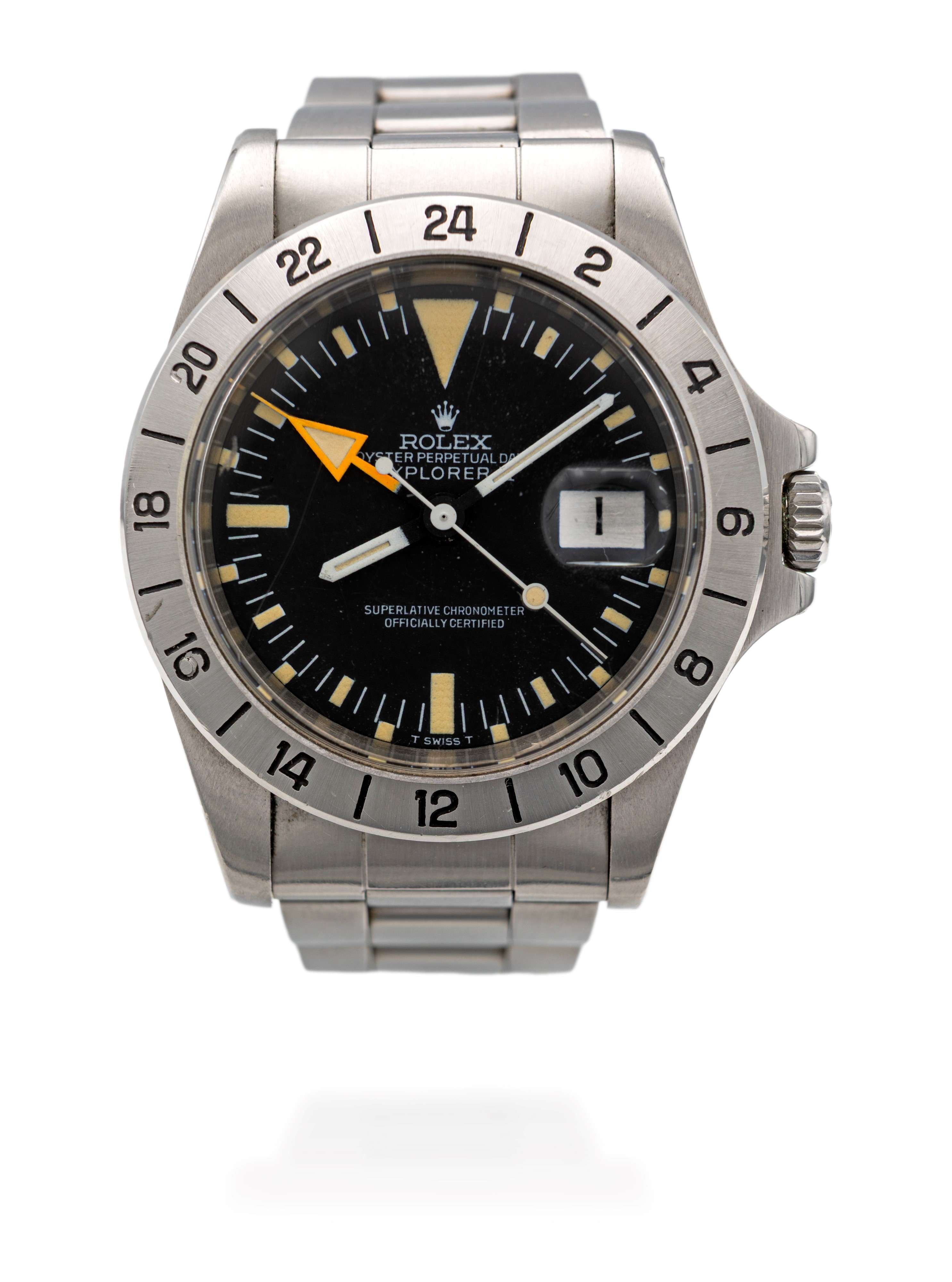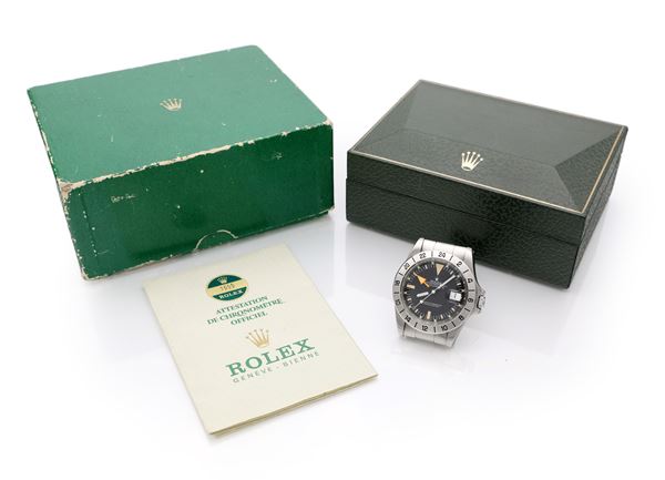 Rolex oyster perpetual date Explorer II "Freccione" in acciaio., Anno 1977