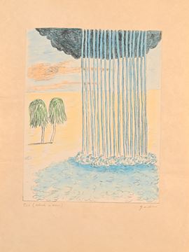 Litografia e acquarello su carta Japon