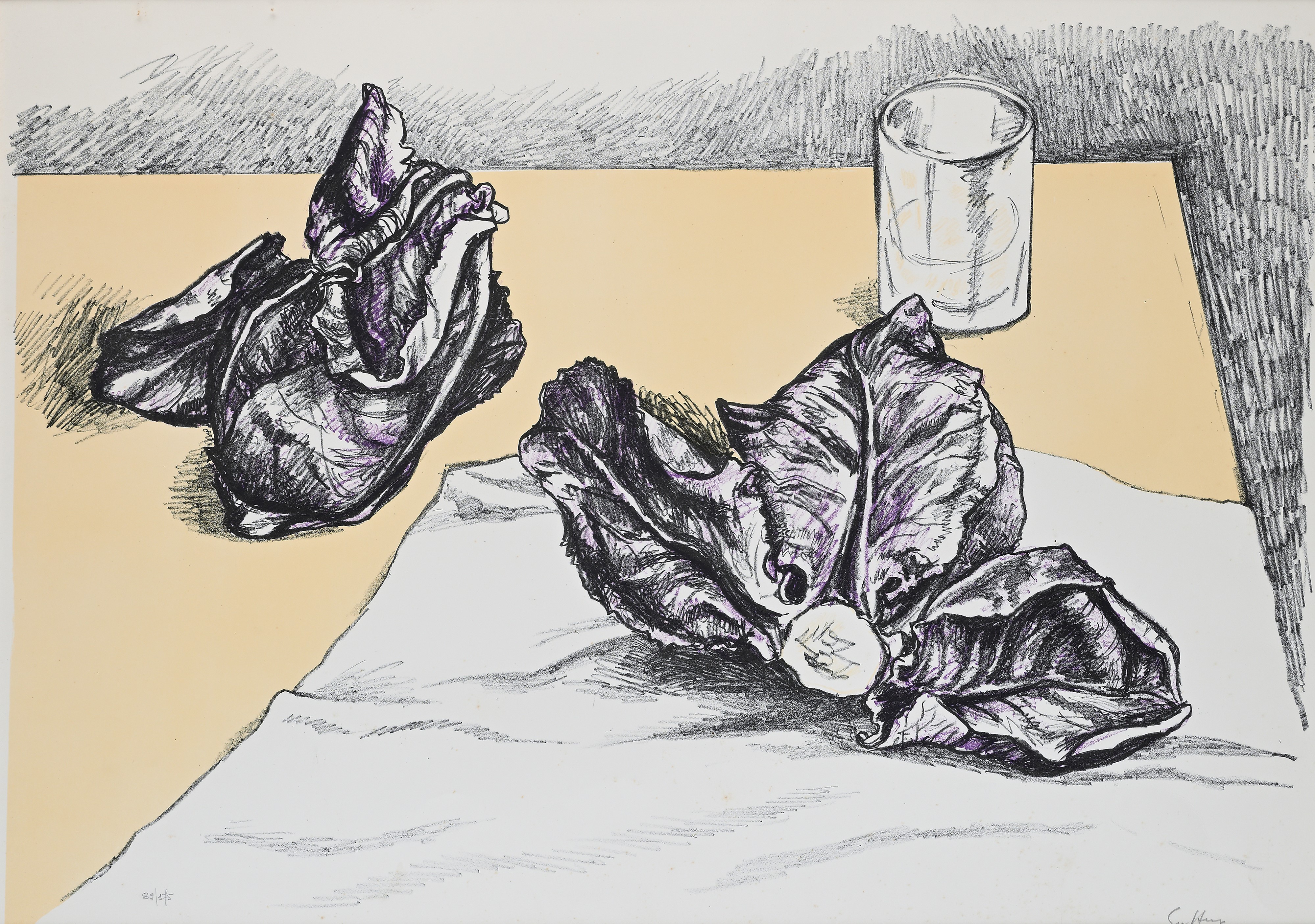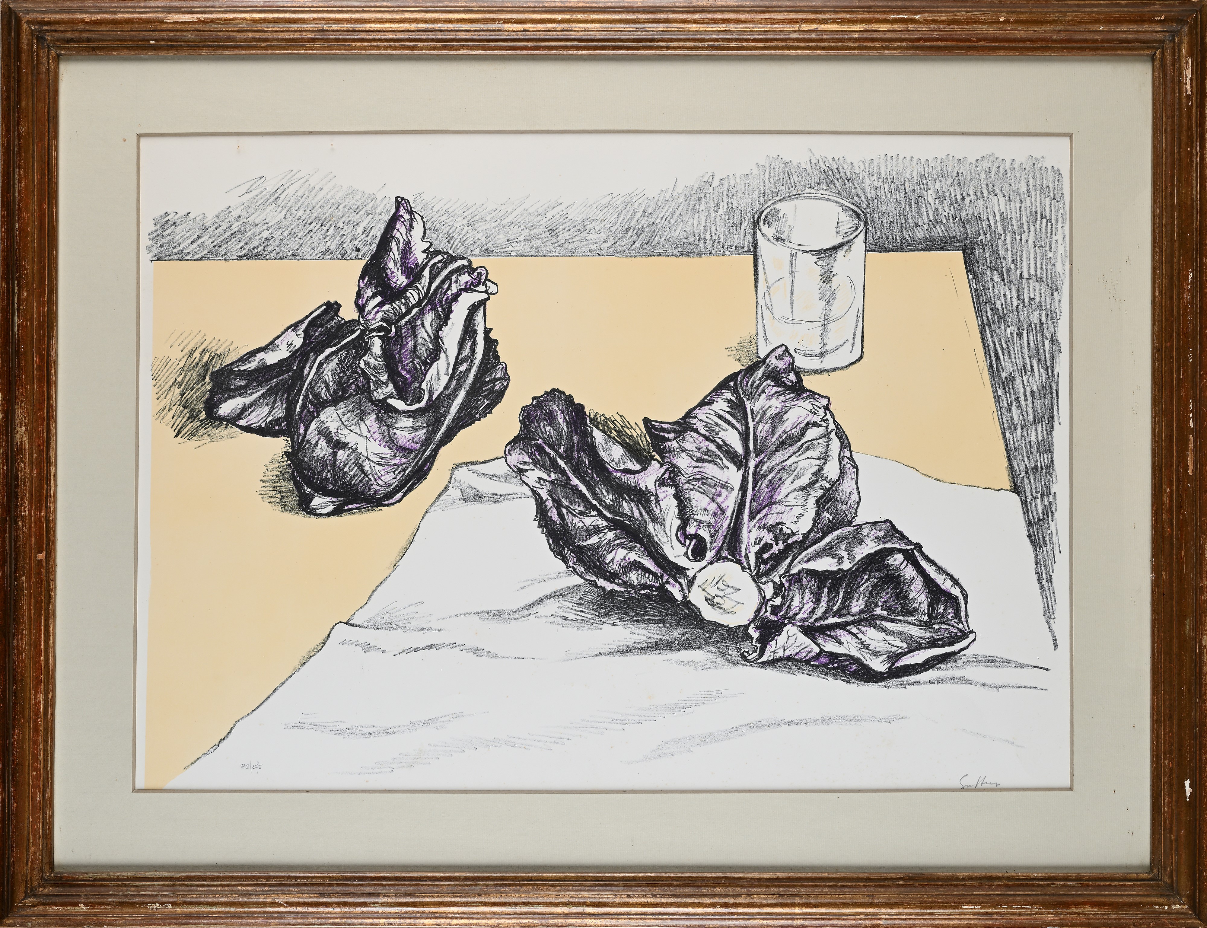 Natura morta con radicchio e bicchiere