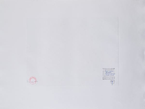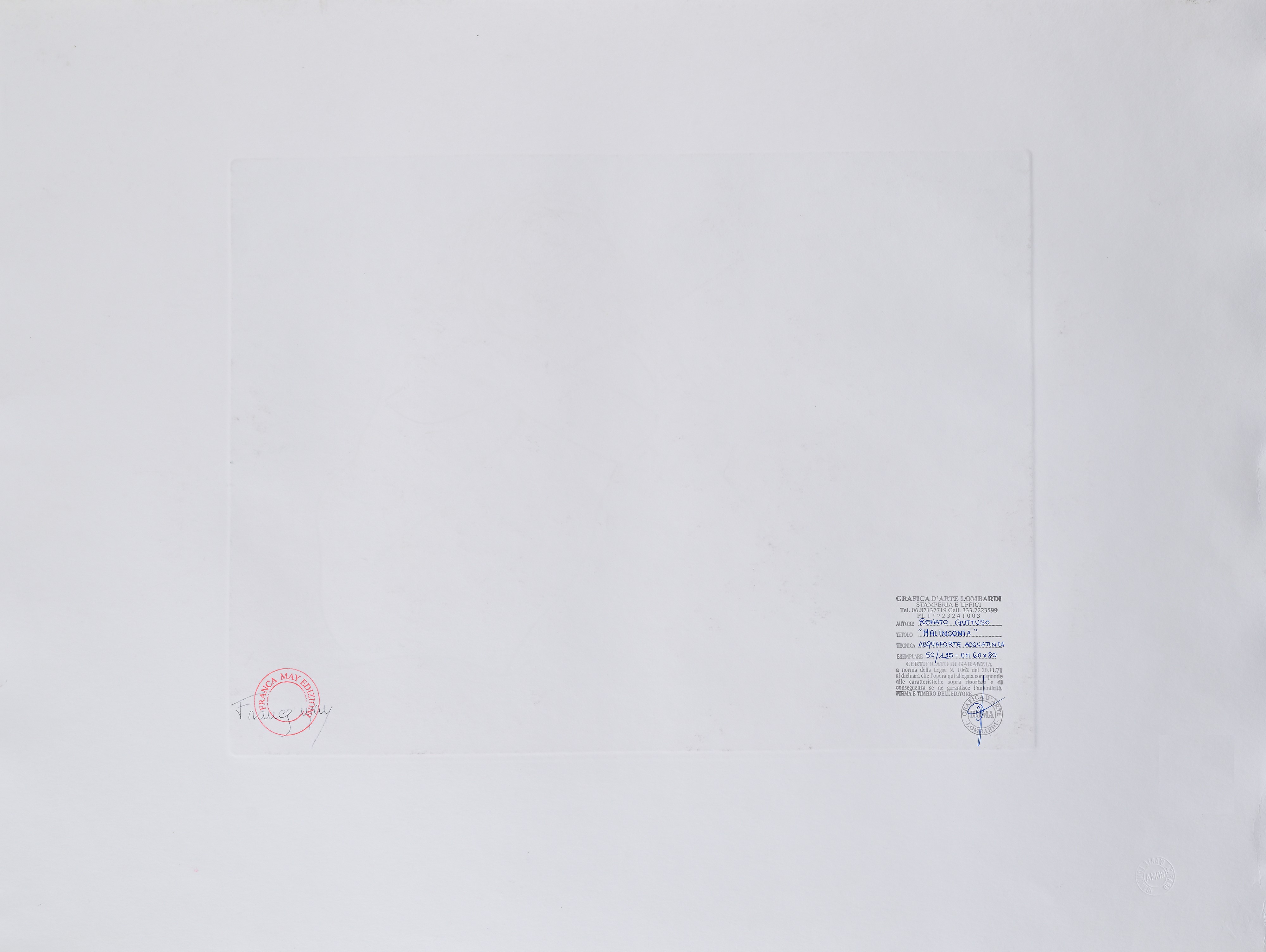 Firma e numerazione "Guttuso 50/125". Timbro a secco Grafica d'Arte Lombardi Roma. Al verso timbro a inchiostro della Grafica Lombardi Roma