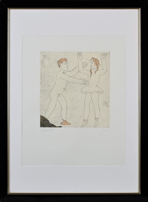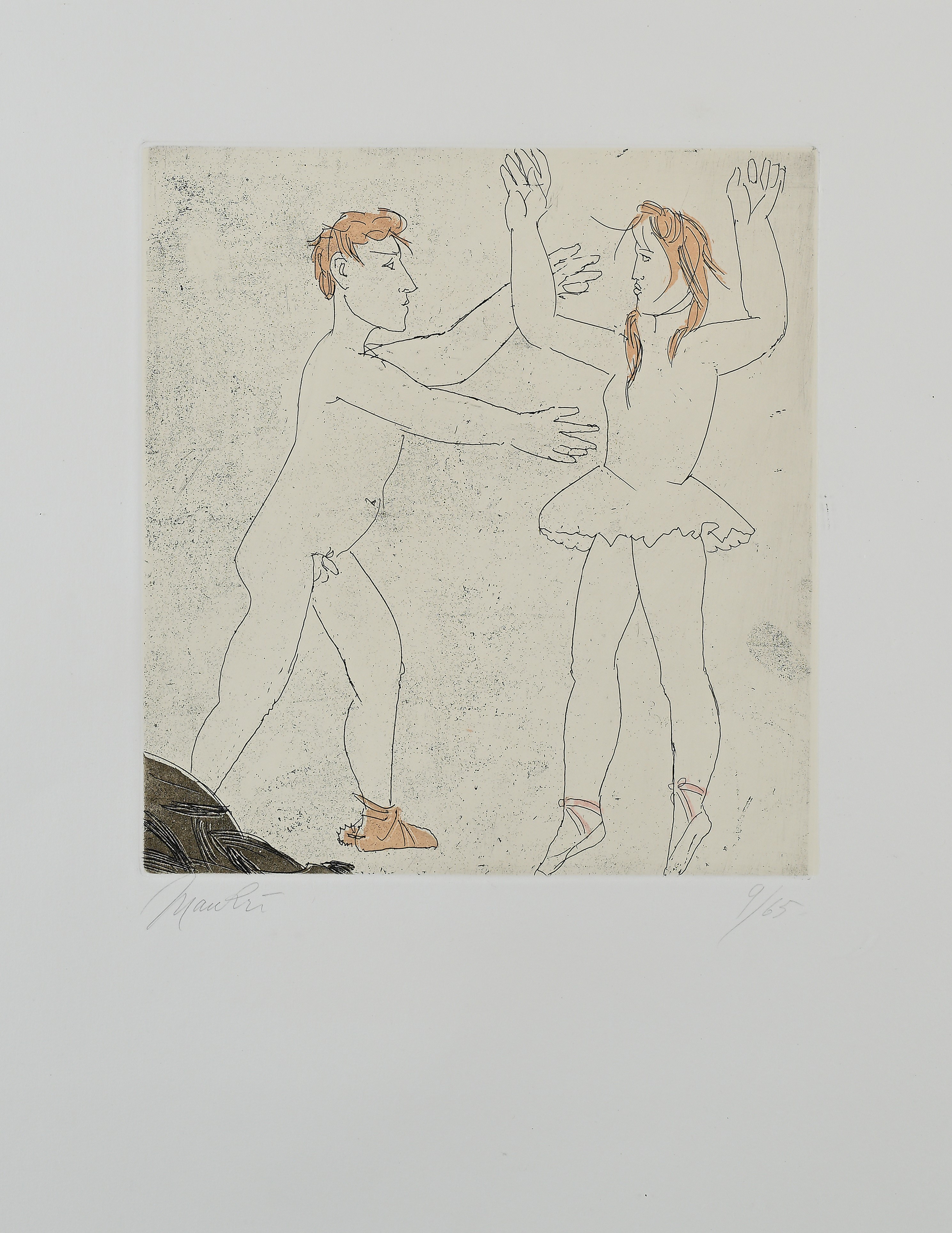 Firma, numerazione "Manzà, 9/65". Timbro stampatore Alberto Caprini, Roma