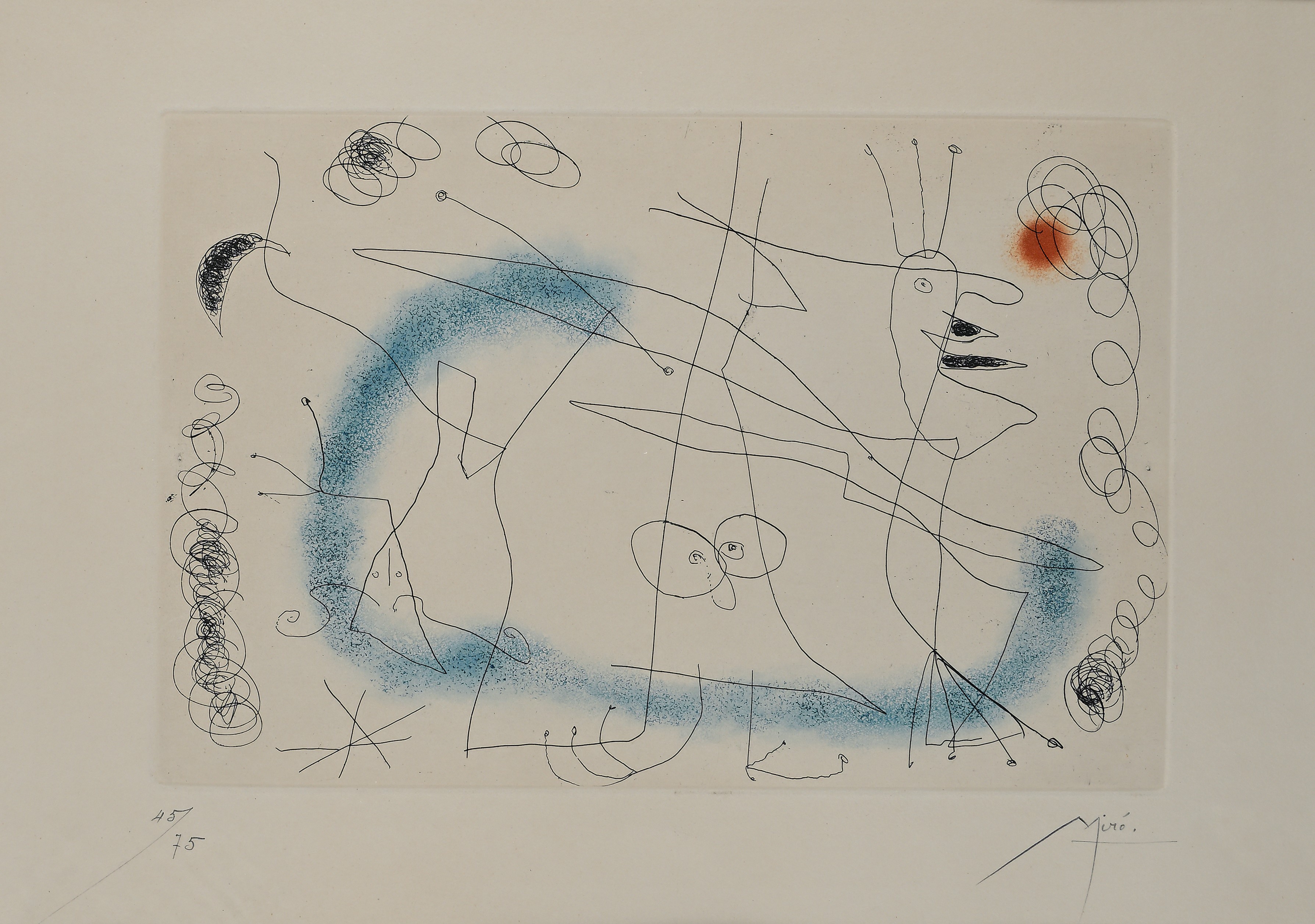 Firma e numerazione a matita "Mirò, 45/75".