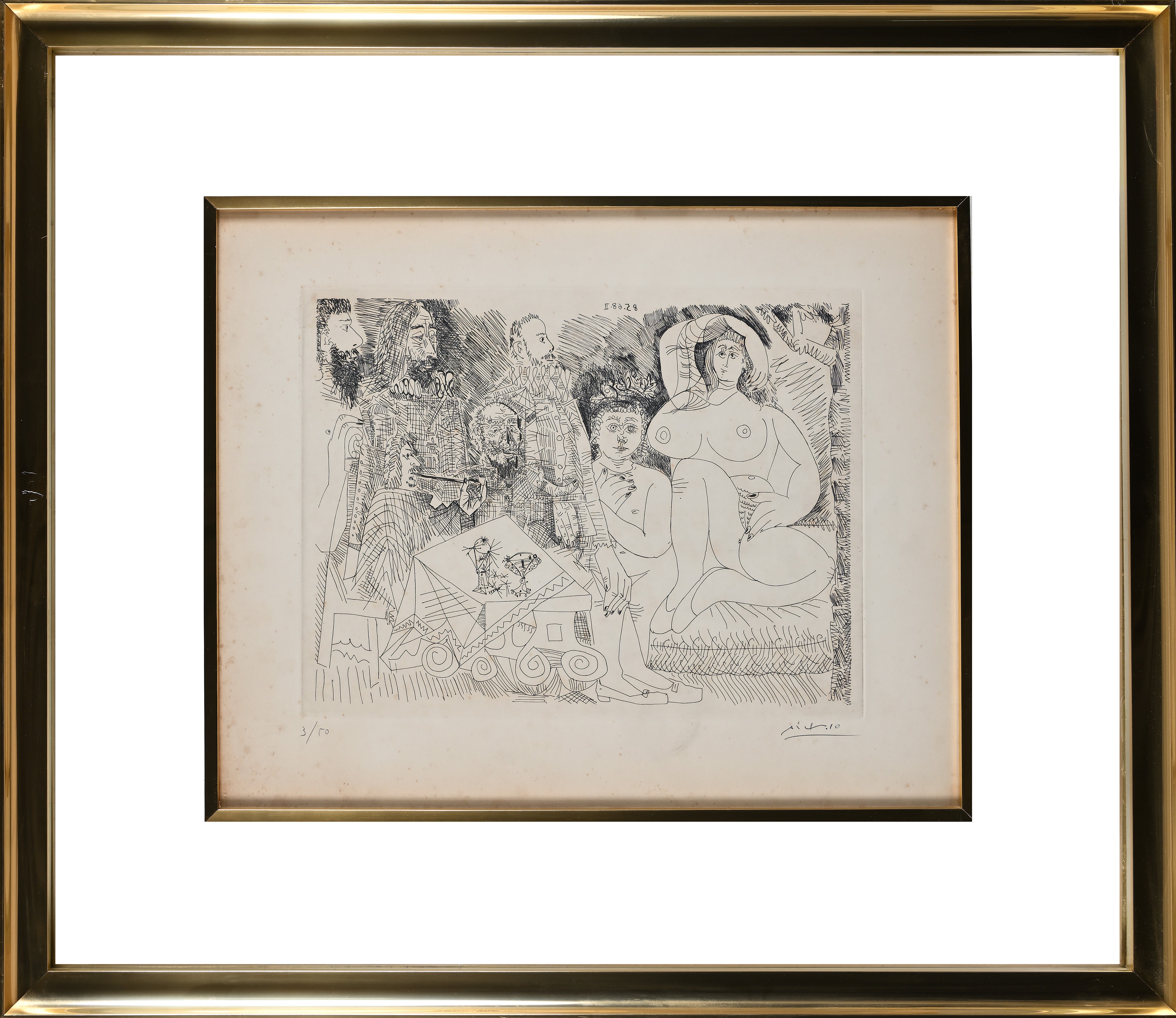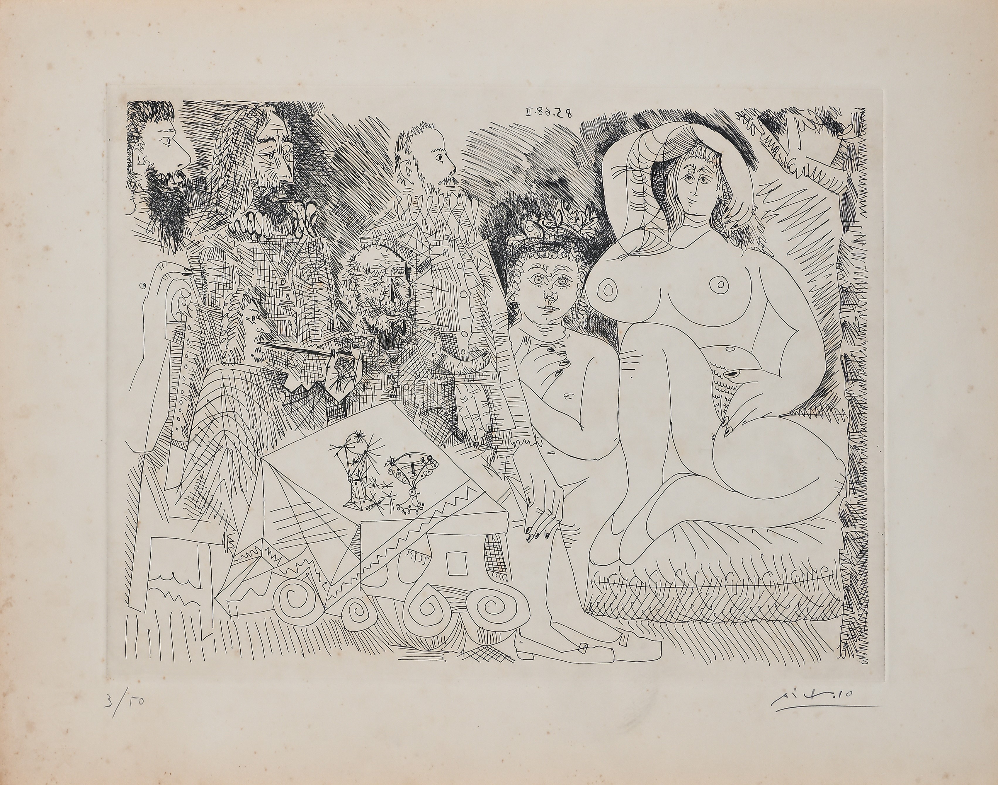 Firma e numerazione a matita "Picasso, 3/50". Filigrana Arches visibile in controluce