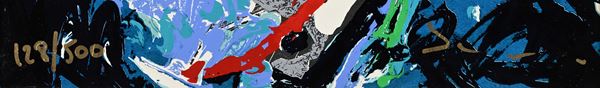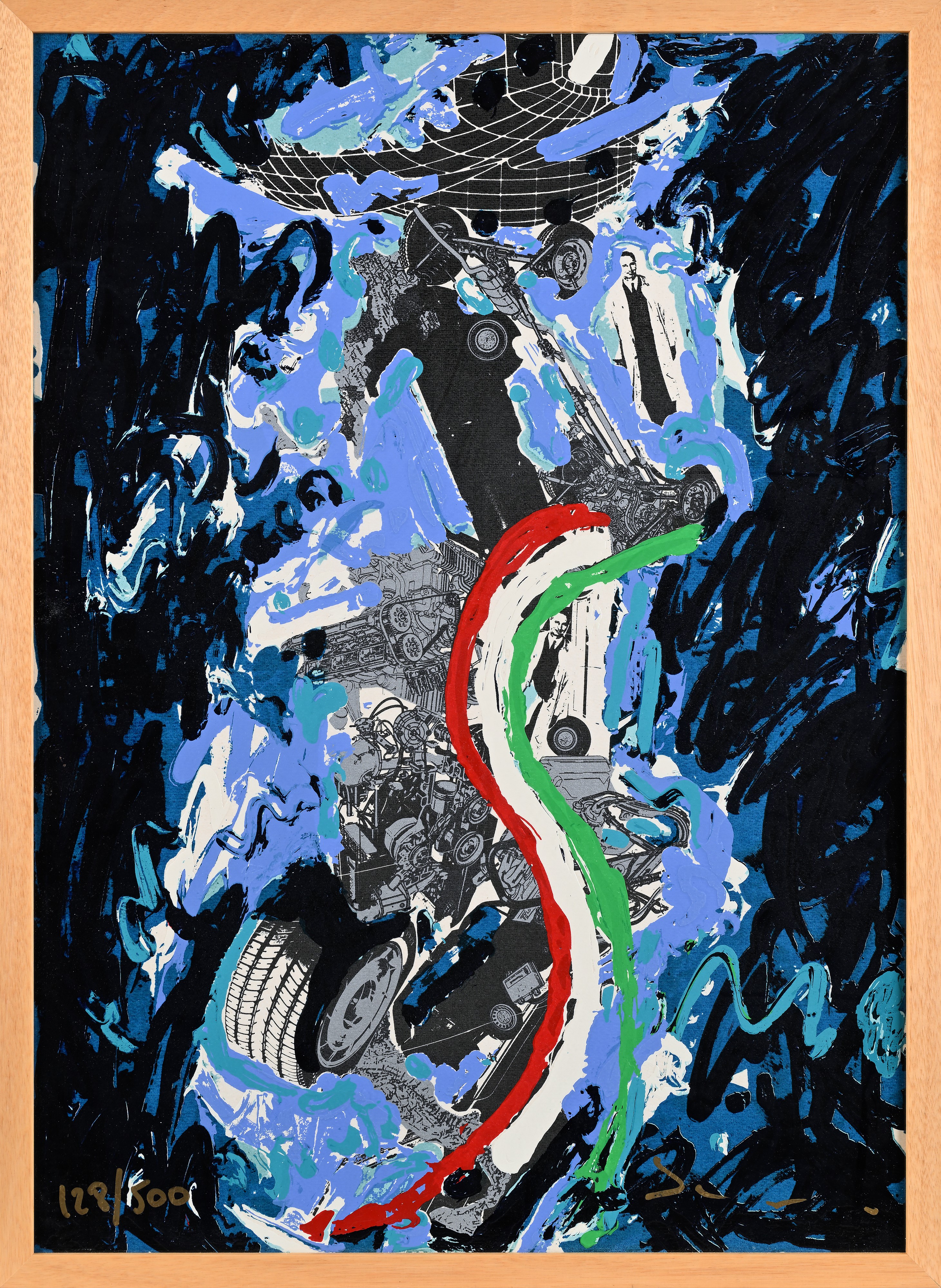 Serigrafia originale di Mario Schifano realizzata nel 1985 dallo stampatore Studio 2R Rinaldo Rossi Genova, per il 40° anniversario de l'Automobile, giornale dell'Automobile Club d'Italia