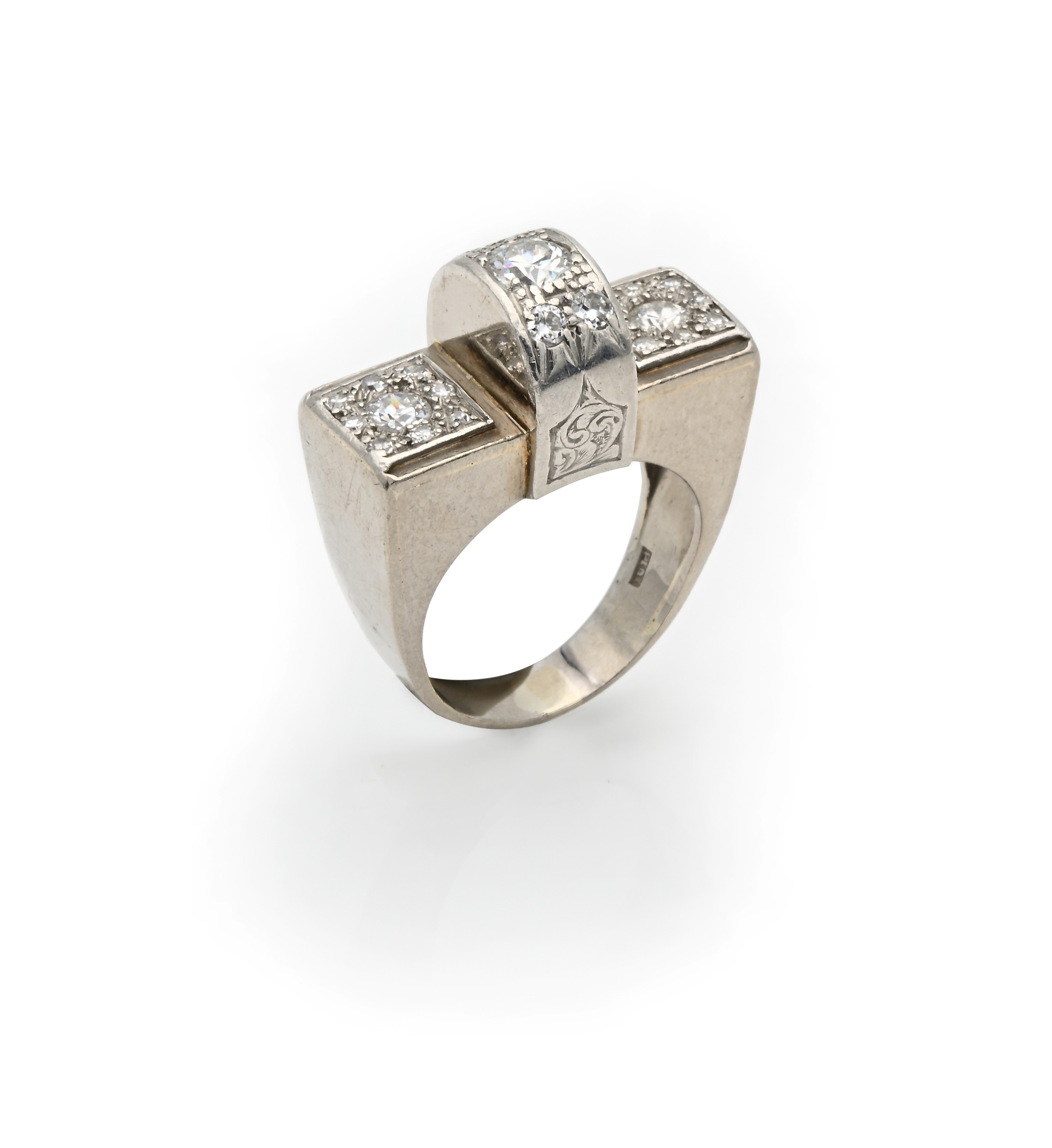 Anello a ponte in oro e platino e brillanti, Anni '30