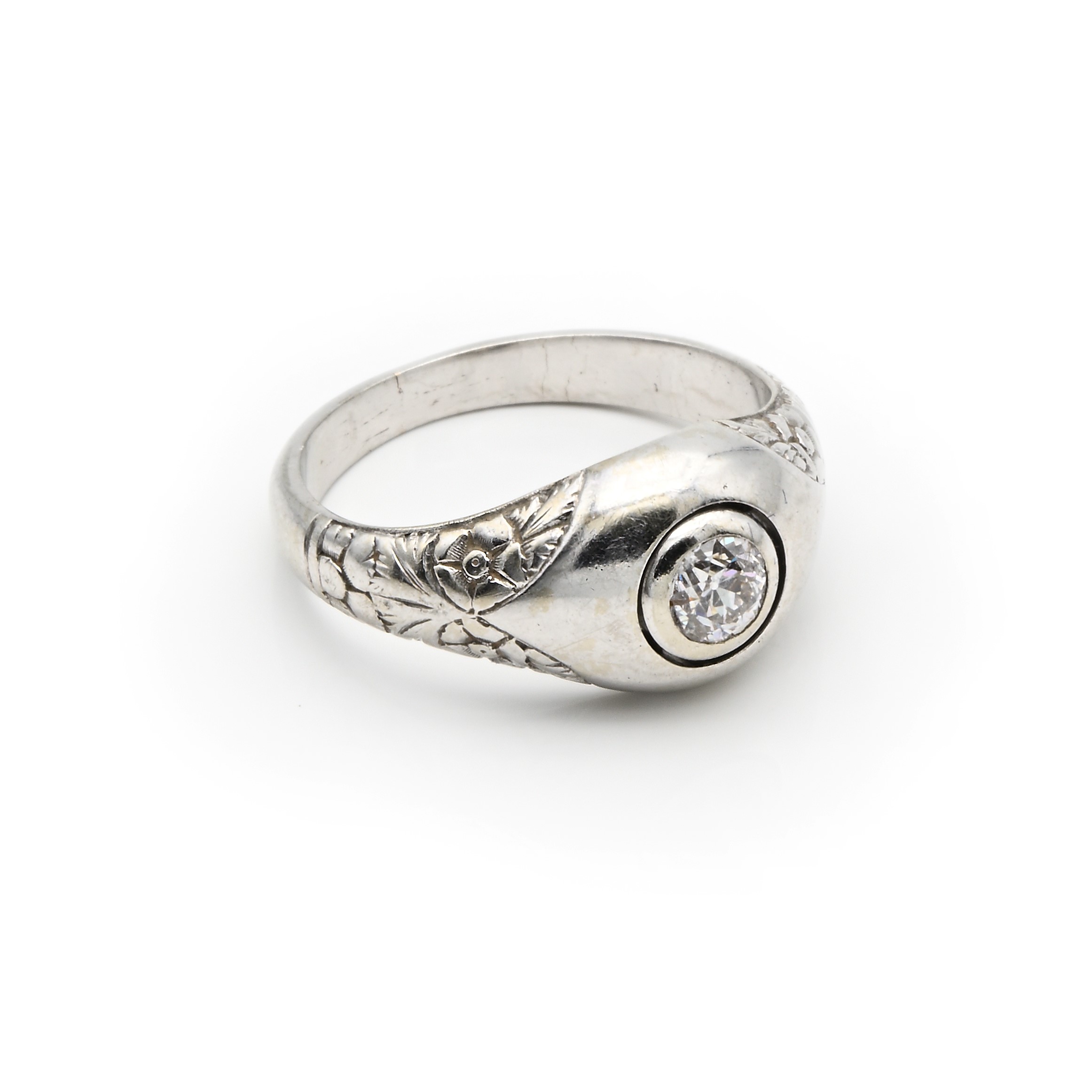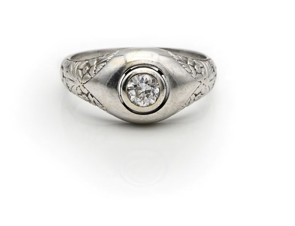 Oro bianco 750/000. Diamante solitario in taglio antico ct. 0,30 ca. Peso complessivo gr.9,50