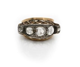 Oro giallo 750/000, argento. Diamanti in taglio rosa. Peso complessivo gr. 8,80