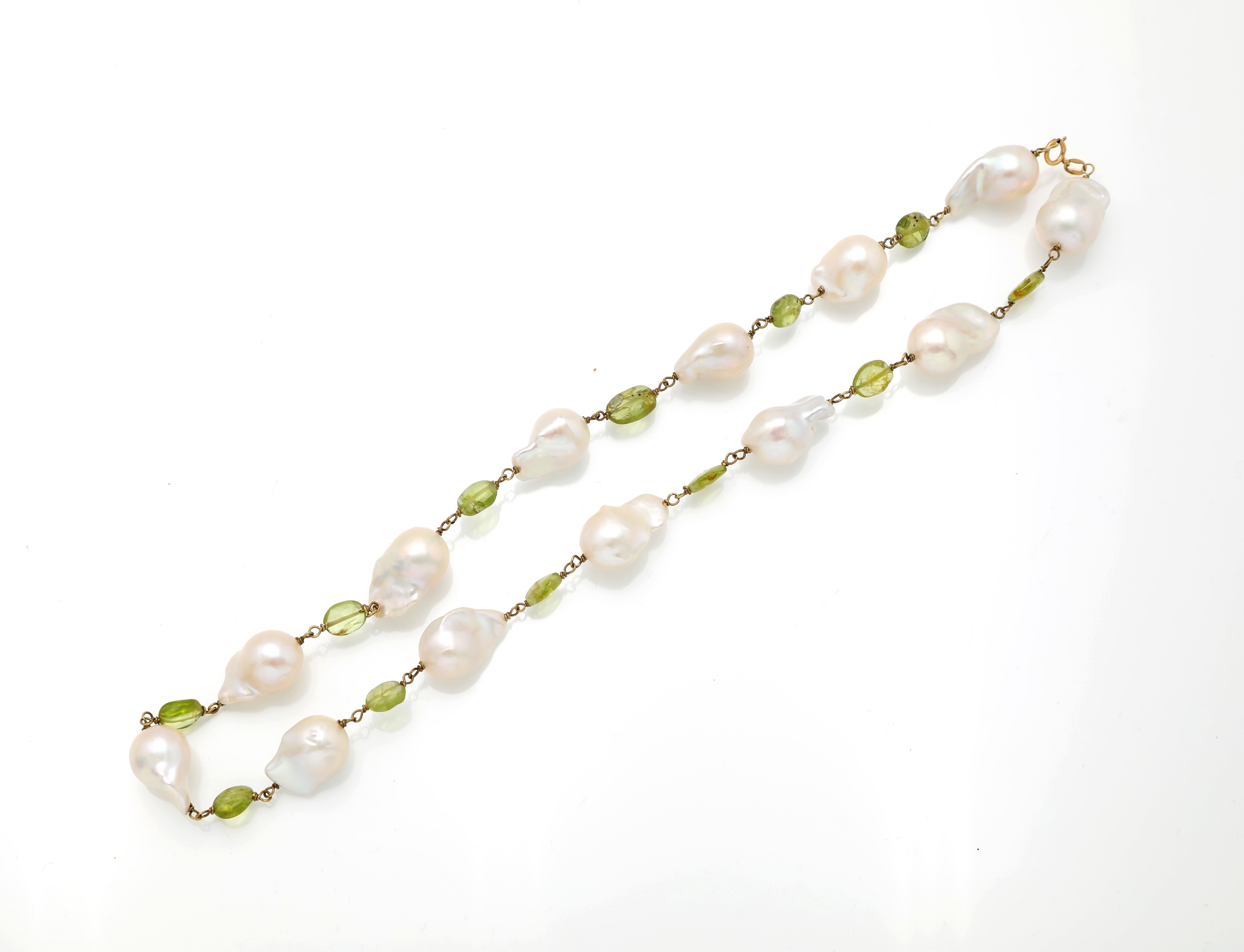 Collana in oro, peridoti e perle barocche.