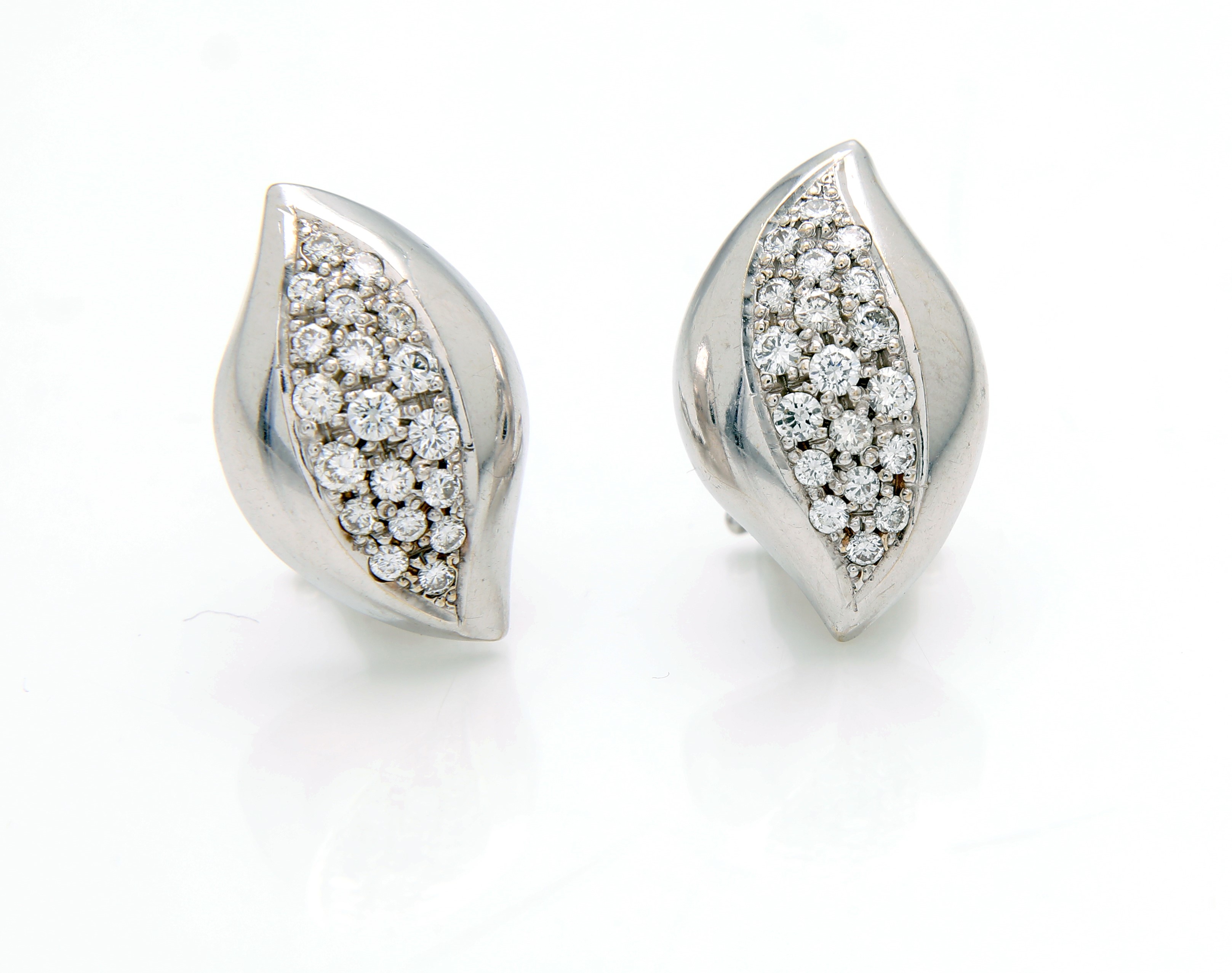 Oro bianco 750/000. Diamanti in taglio rotondo brillante ct. 0,50 ca. Peso complessivo gr. 9,60. Chiusura a clip.