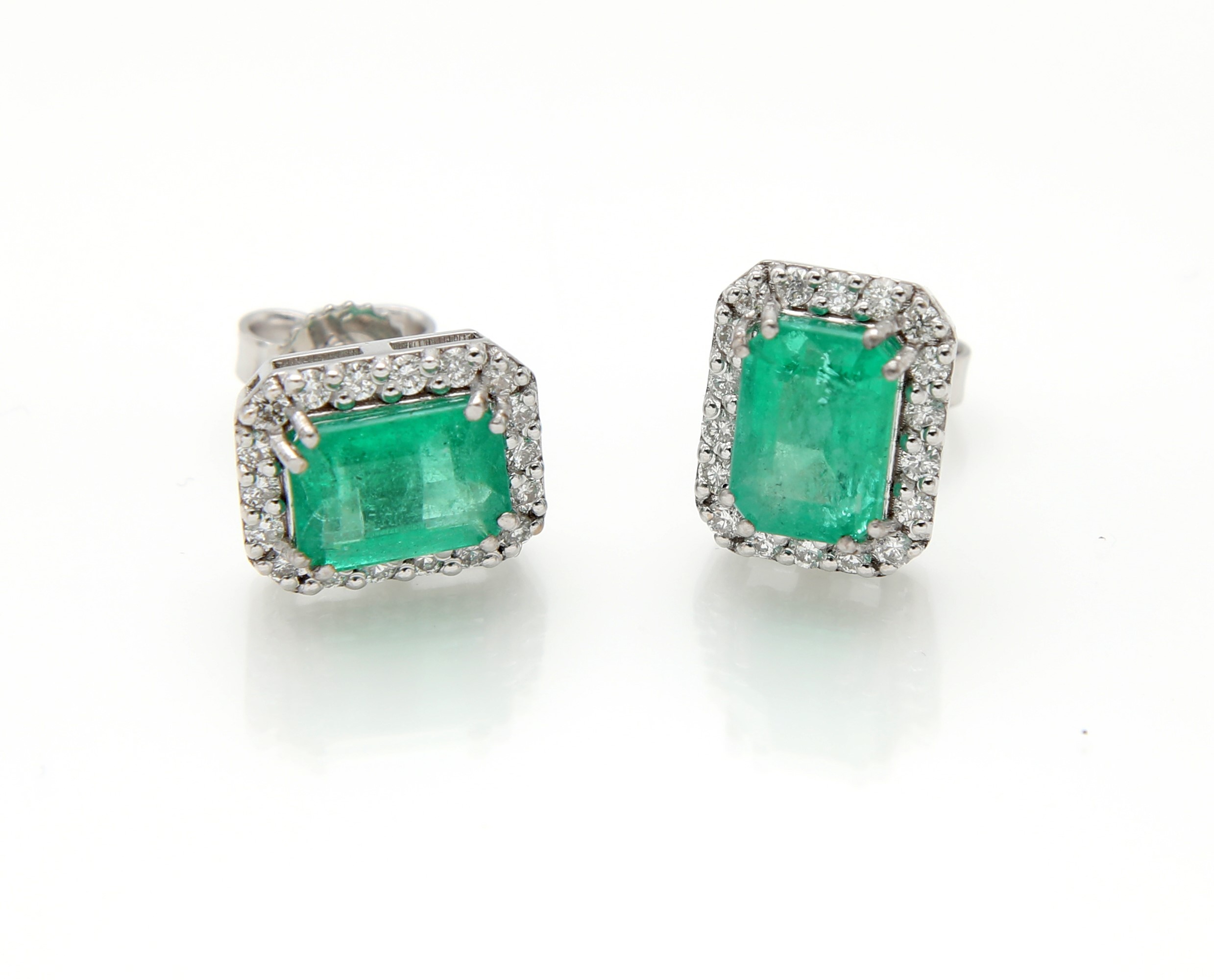 Oro bianco 750/000. Smeraldi ct. 2,30, brillanti ct. 0,40. Peso complessivo gr. 2,80