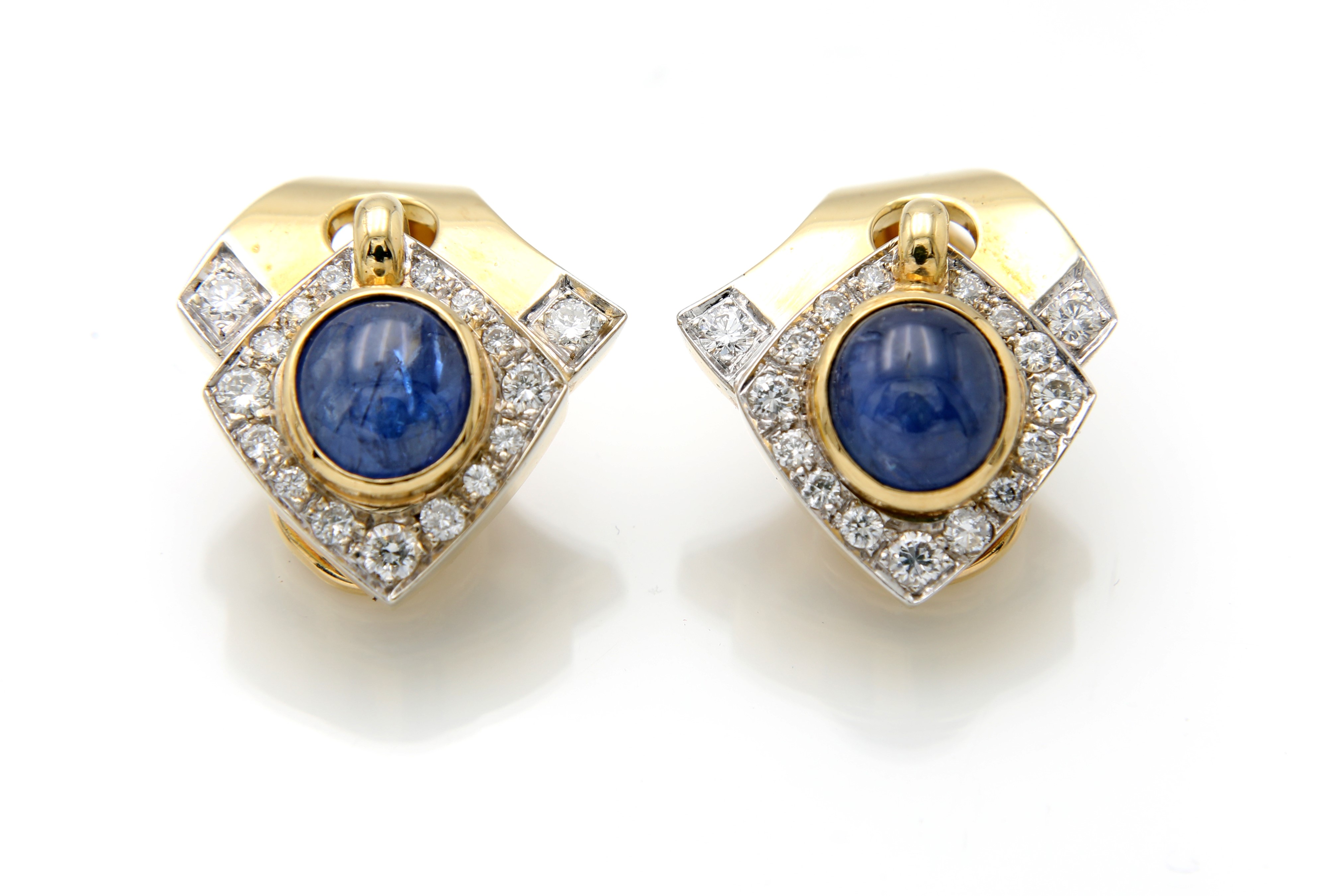 Oro bianco e giallo 750/000. Zaffiri in taglio cabochon ct. 4,50 ca. Peso complessivo gr. 14,40.