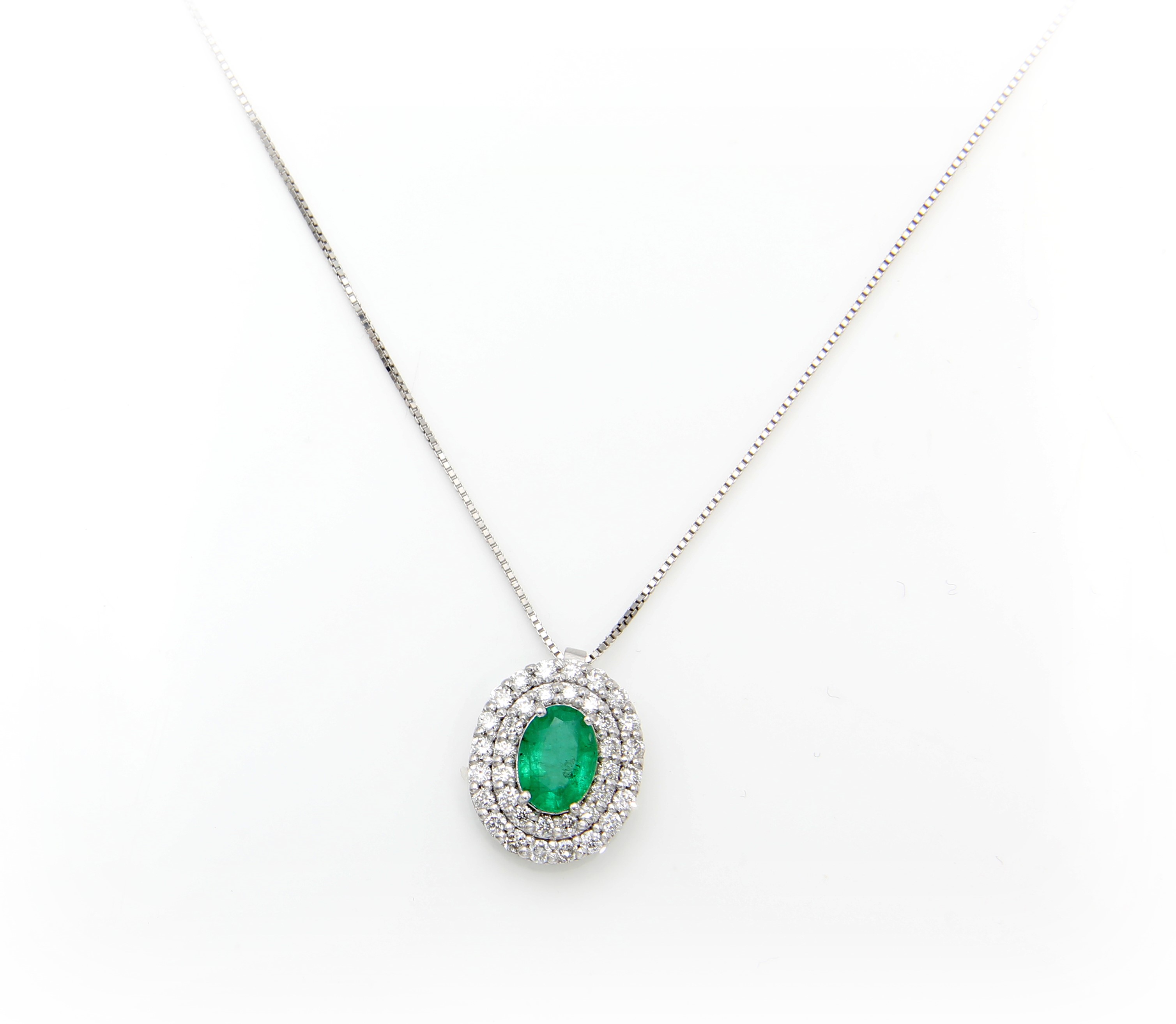 Oro bianco 750/000. Smeraldo ct. 1, brillanti ct. 0,60. Peso complessivo gr. 2,60