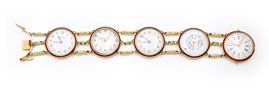 Raro bracciale in oro, smalti e 5 monachine