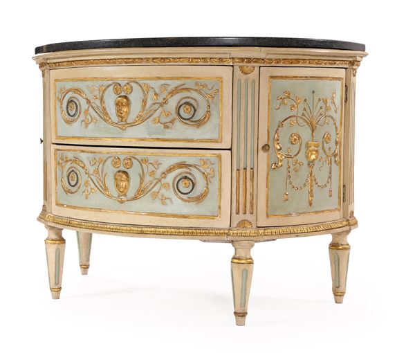 Cassettone a demi-lune in legno laccato, Piemonte, fine del XVIII secolo