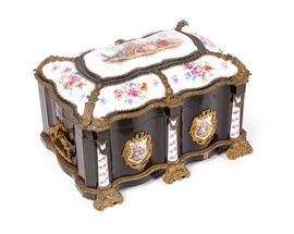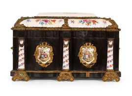 Cofanetto in legno ebanizzato con placche in porcellana policroma, Francia, XIX secolo