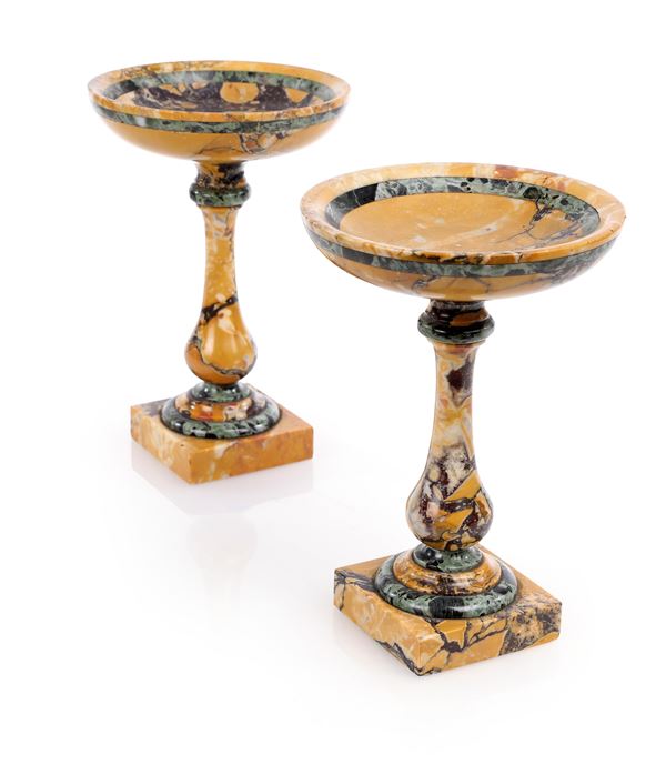 Coppia di alzatine in marmo giallo antico, XIX secolo
