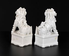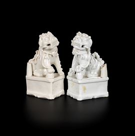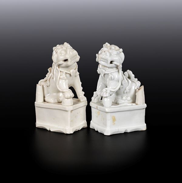 Coppia di cani di Pho in porcellana bianca, Cina, dinastia Qing, XIX secolo