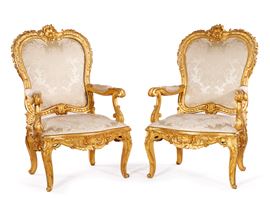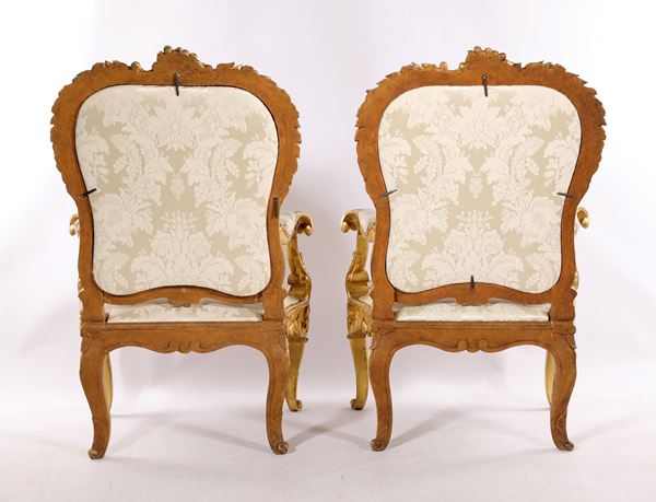 Coppia di poltrone in legno intagliato e dorato, Roma, XVIII secolo