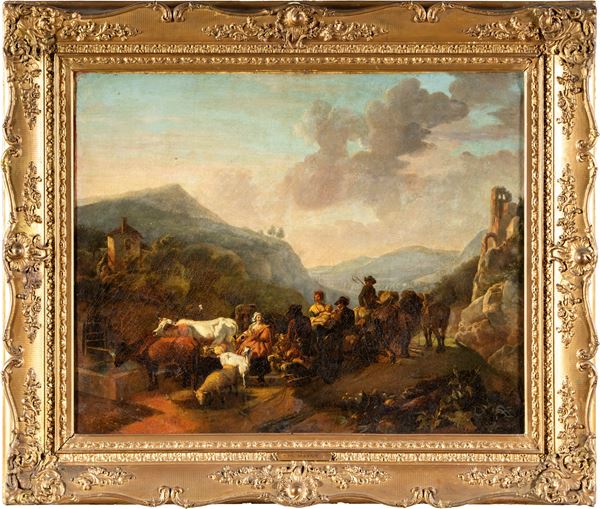 Etichetta a tergo: Jean-Louis De Marne 1744-1829 Mountain Pass with Figures, from the collection of Count Reniert of Vienna