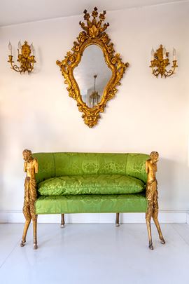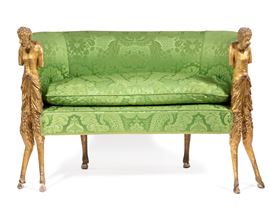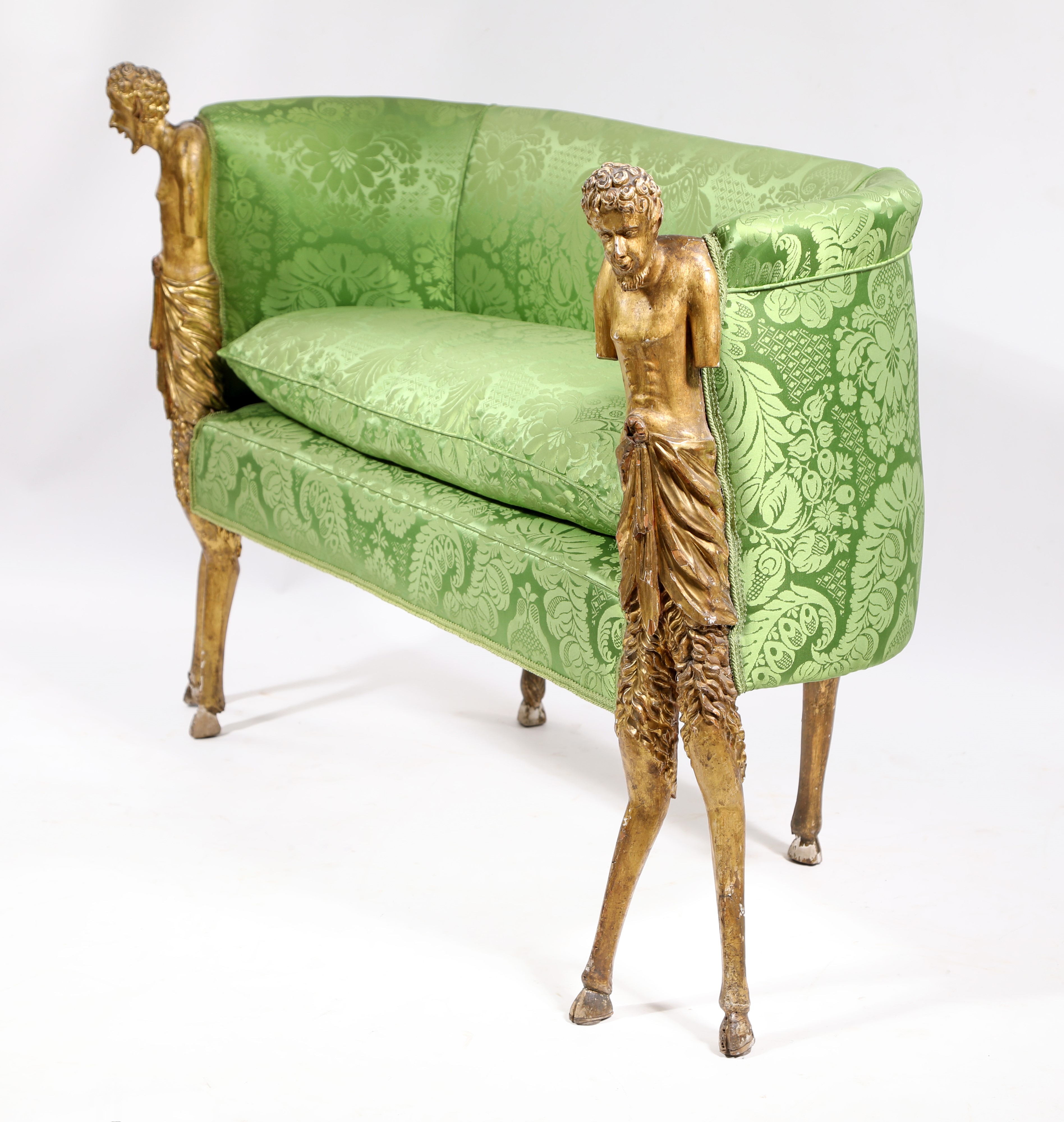 Divanetto in legno scolpito e dorato con figure di fauno, Venezia, fine del XVIII/inizio del XIX secolo