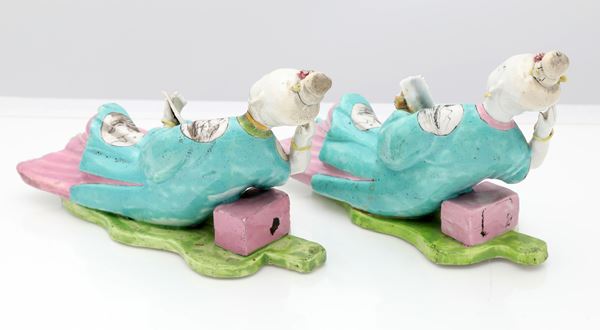 Due figure femminili in porcellana policroma, Cina, dinastia Qing, XIX secolo