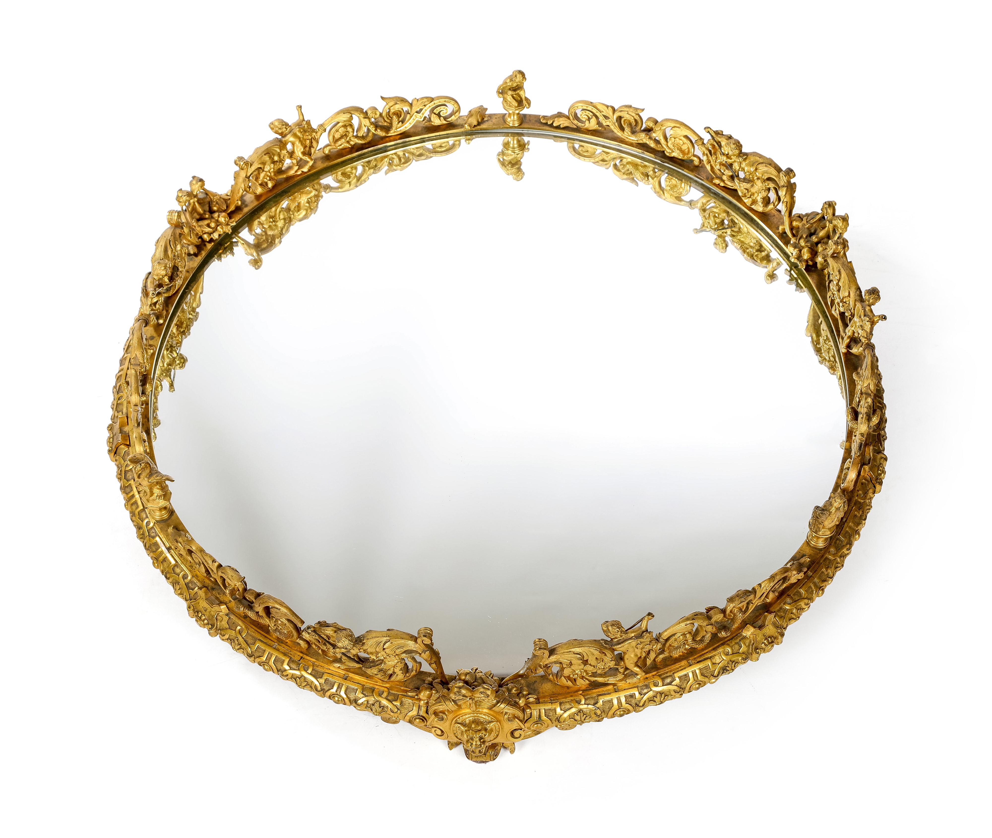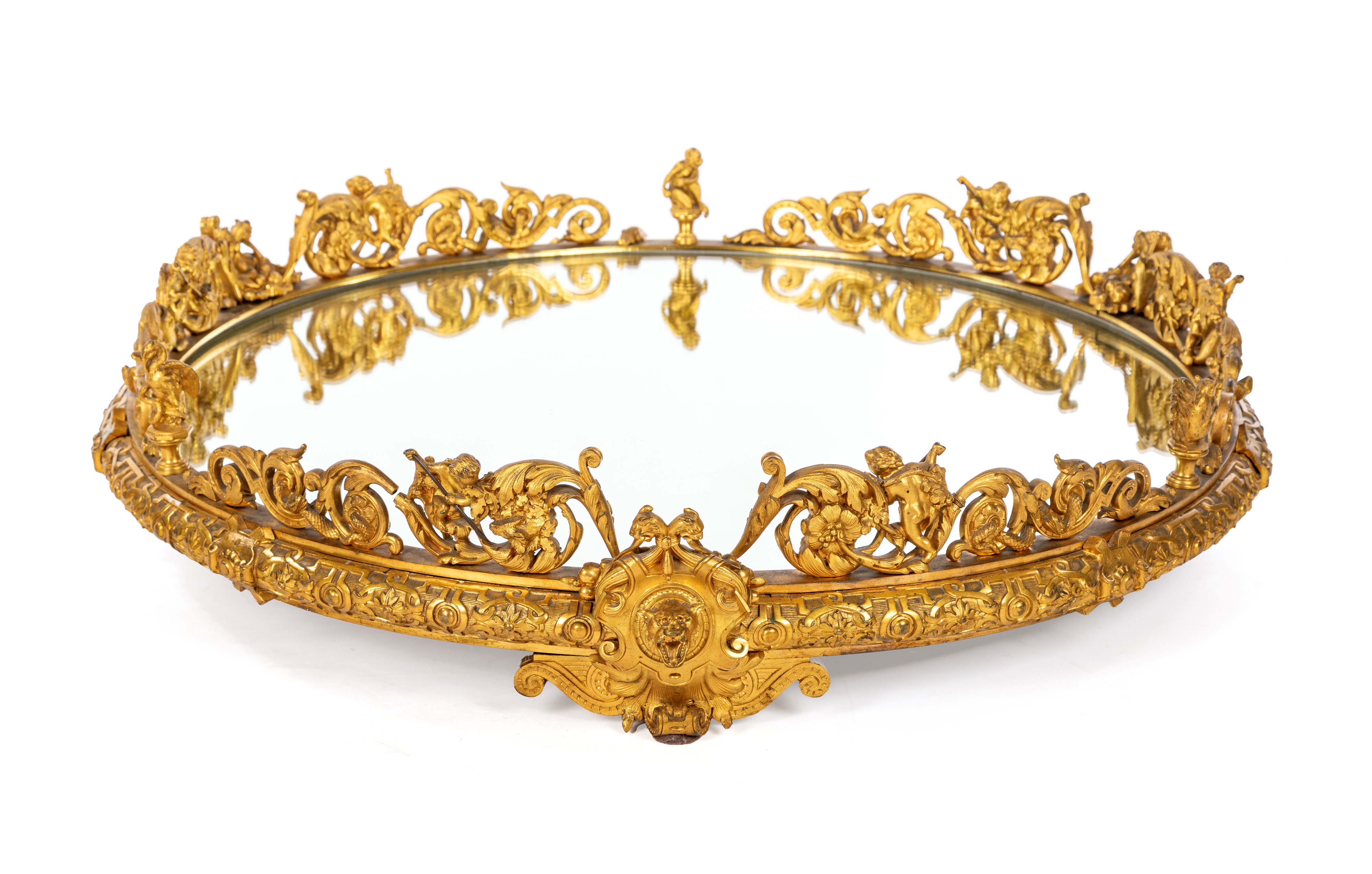Grande centrotavola in bronzo dorato con specchio, XIX secolo