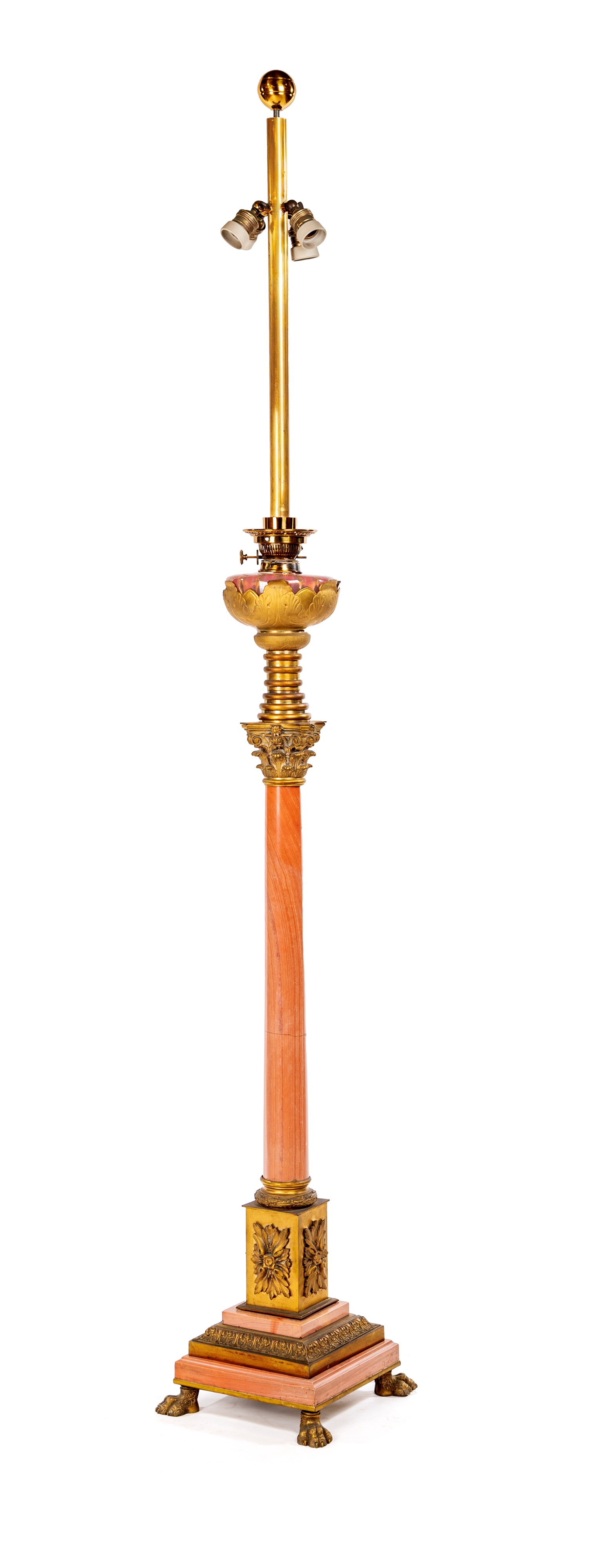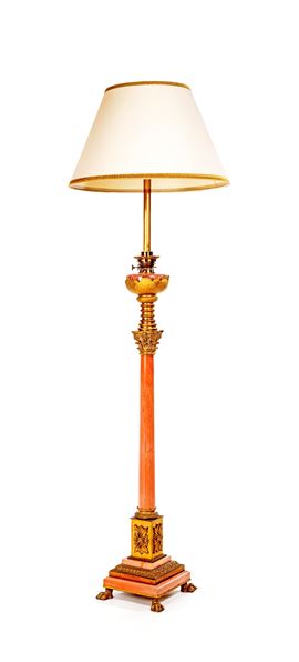Lampada da terra in marmo rosa e ottone dorato , XX secolo