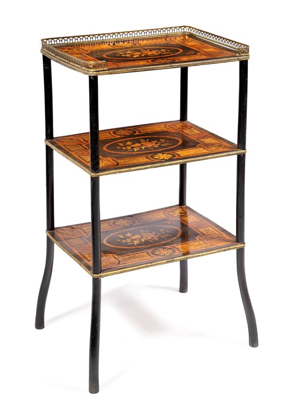 lungo stelo in forma di colonna in marmo su base quadrangolare gradinata sorretta da piedi ferini; rifinita sulla sommità da un capitello corinzio, reca portalampada emergente da una coppa in vetro rosa con sostegno percorso da nervature ad anello