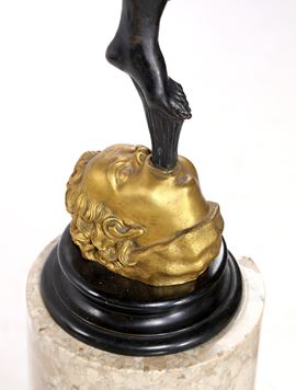 su rocchio di colonna in marmo. Replica dell'originale cinquecentesco dello scultore fiammingo attivo a Firenze, custodito al Museo Nazionale del Bargello.