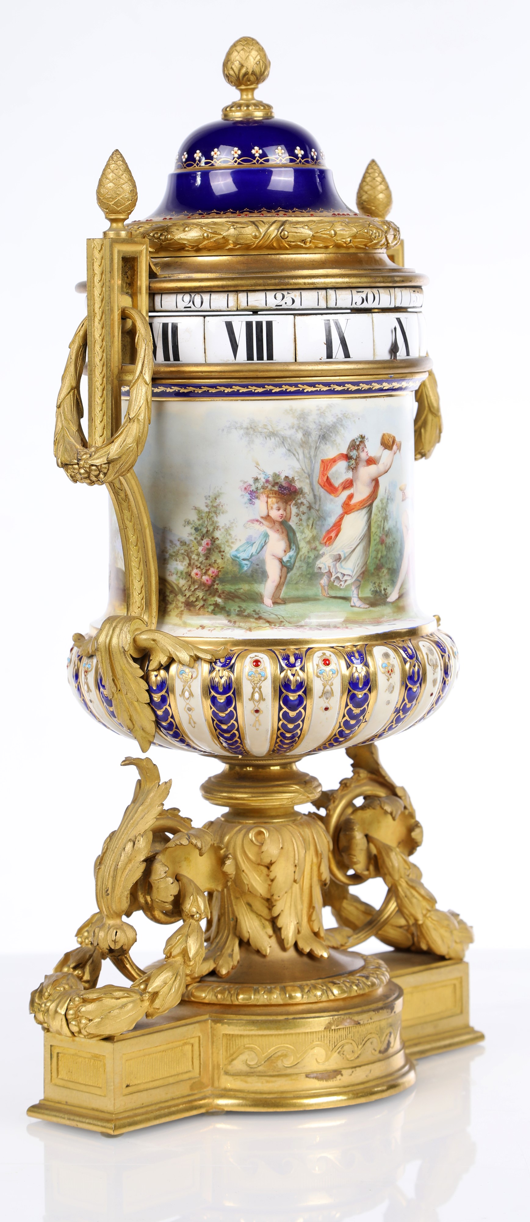 Orologio rotante d'epoca Direttorio in bronzo dorato e porcellana di Sèvres, Francia, fine del XVIII/inizi del XIX secolo