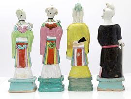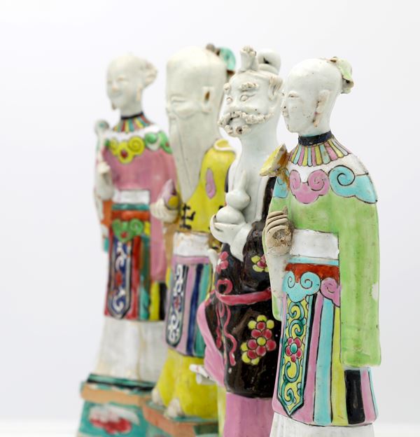 Quattro figure di Immortali in porcellana policroma, Cina, dinastia Qing, epoca Qianlong, fine del XVIII secolo,