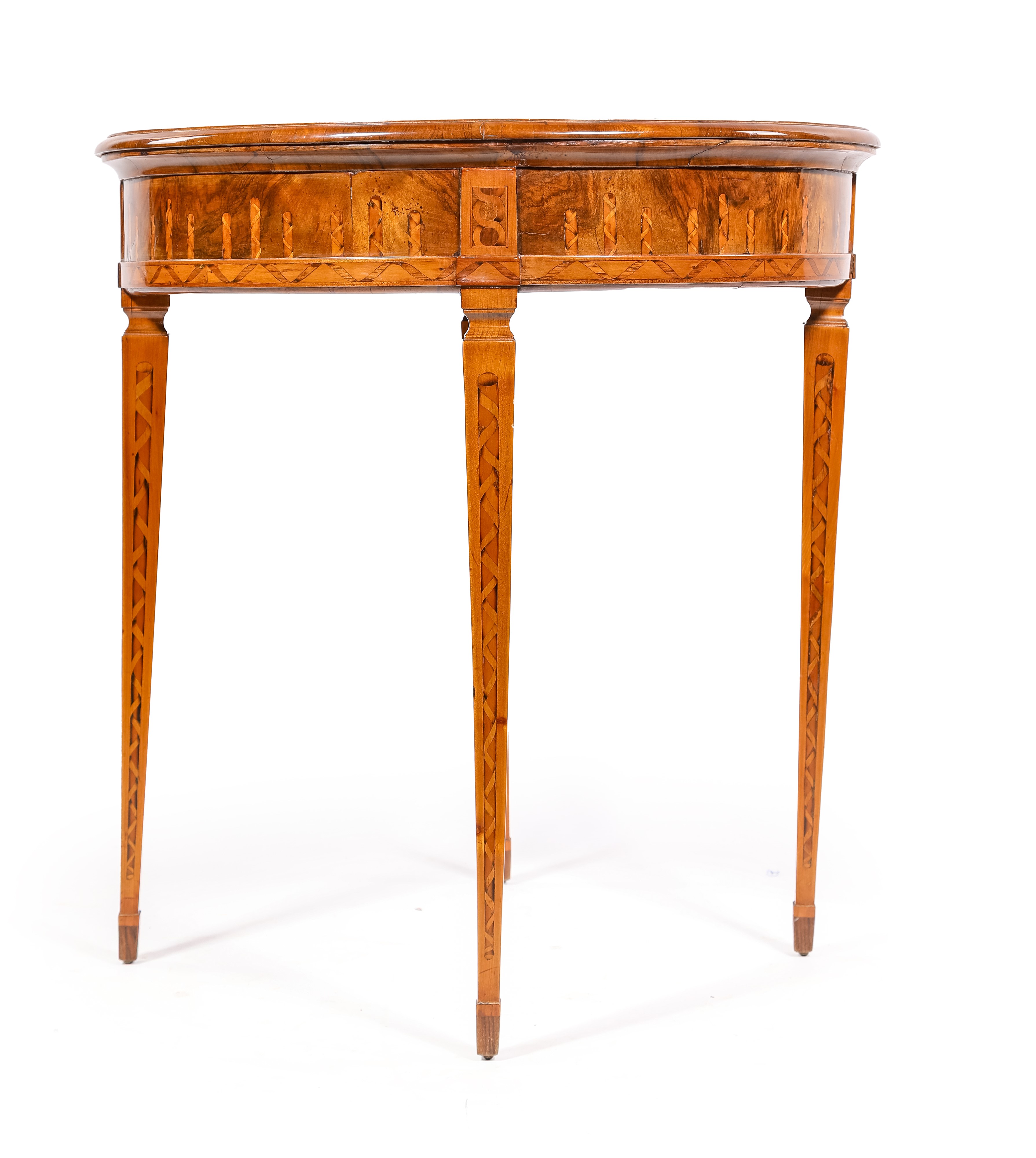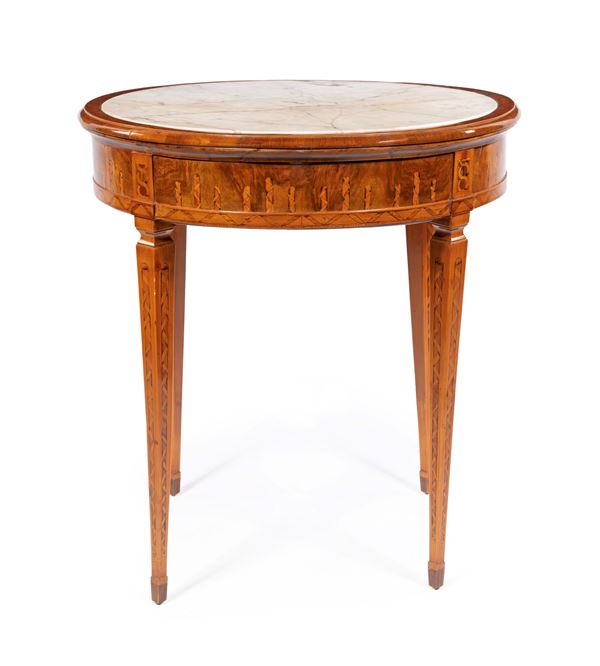 Tavolino Luigi XVI in noce con intarsi in legni di frutto, Toscana, fine del XVIII secolo