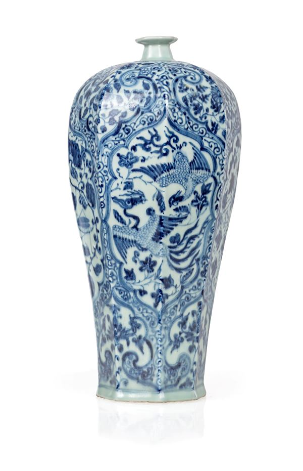 Vaso in porcellana bianca e blu, Cina, dinastia Qing, XIX secolo