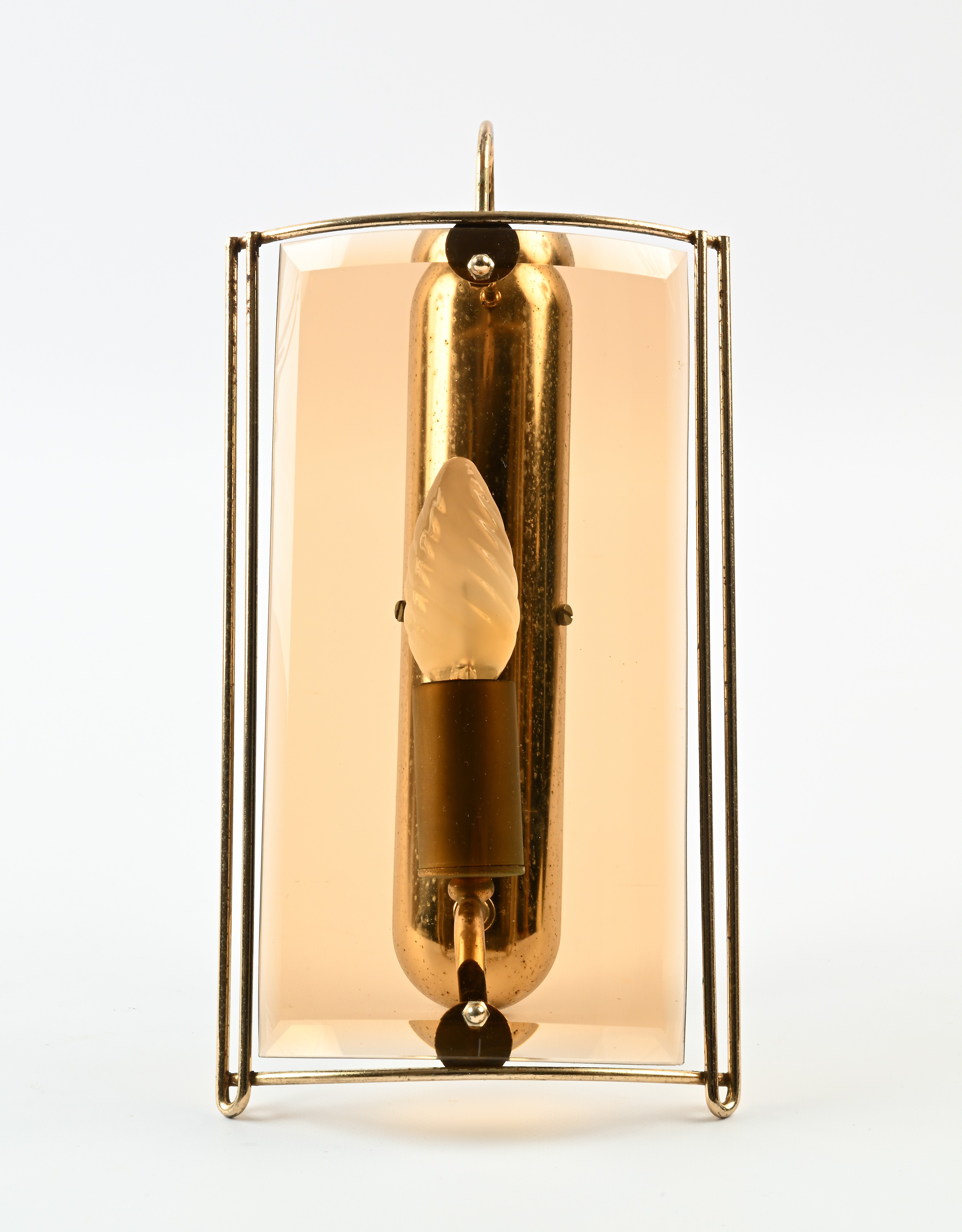 Applique in metallo dorato e vetro fumé